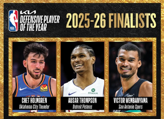 最佳防守球员:霍姆格伦,奥萨尔汤普森,文班亚马