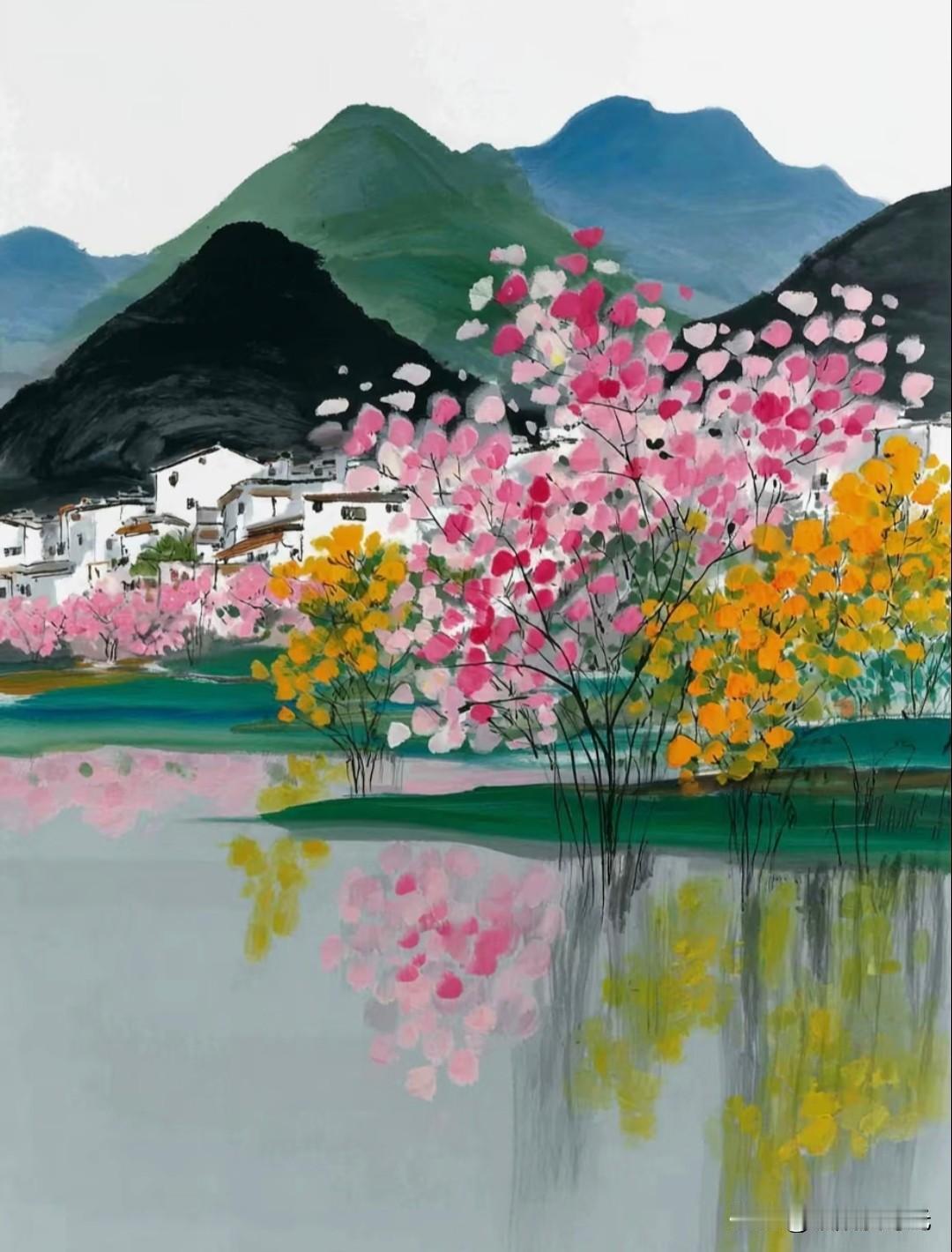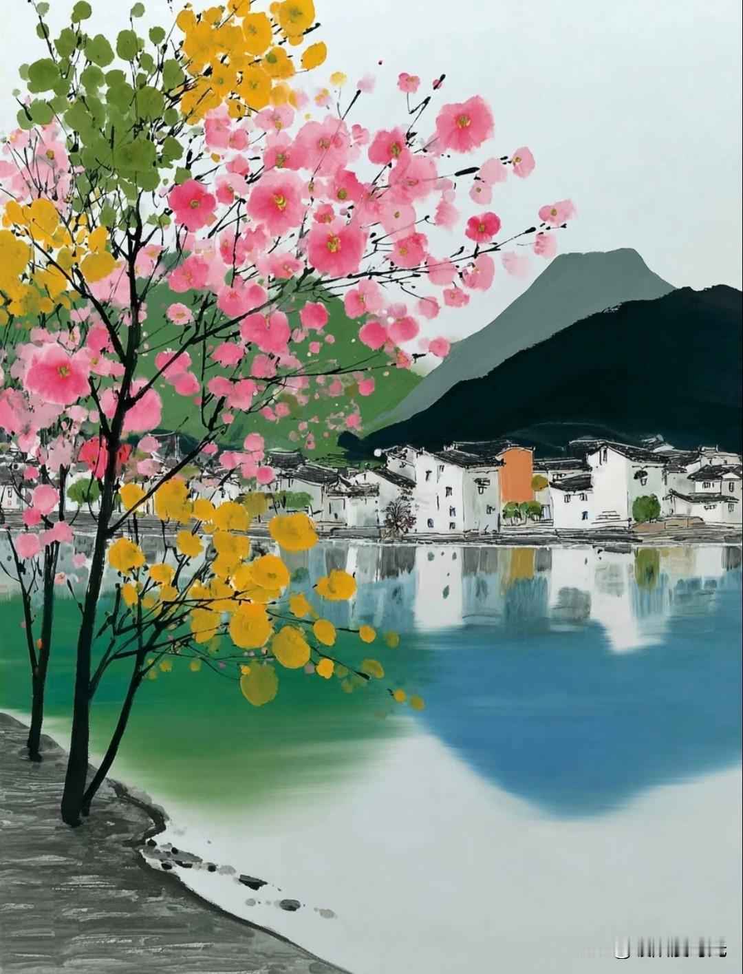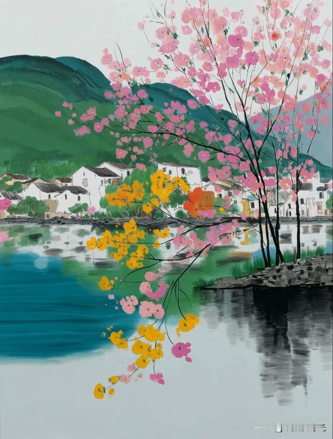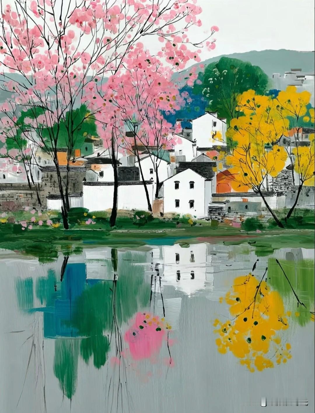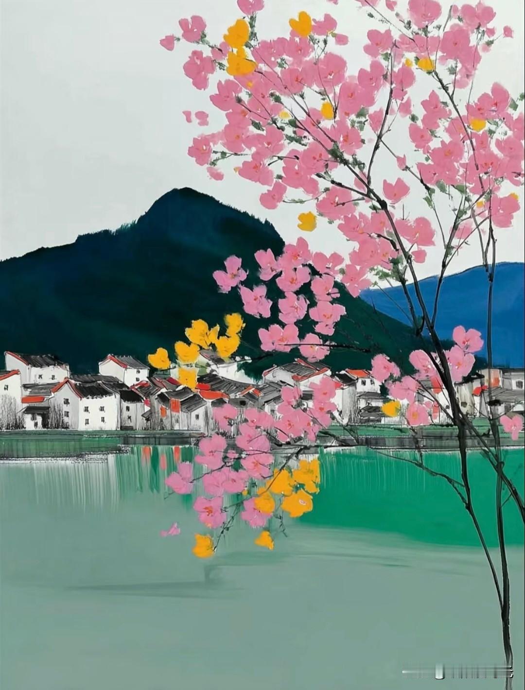春色染水墨,田园诗意浓,画卷藏生机。 流星的数字艺术治愈系插画分享 颜色诗意 美