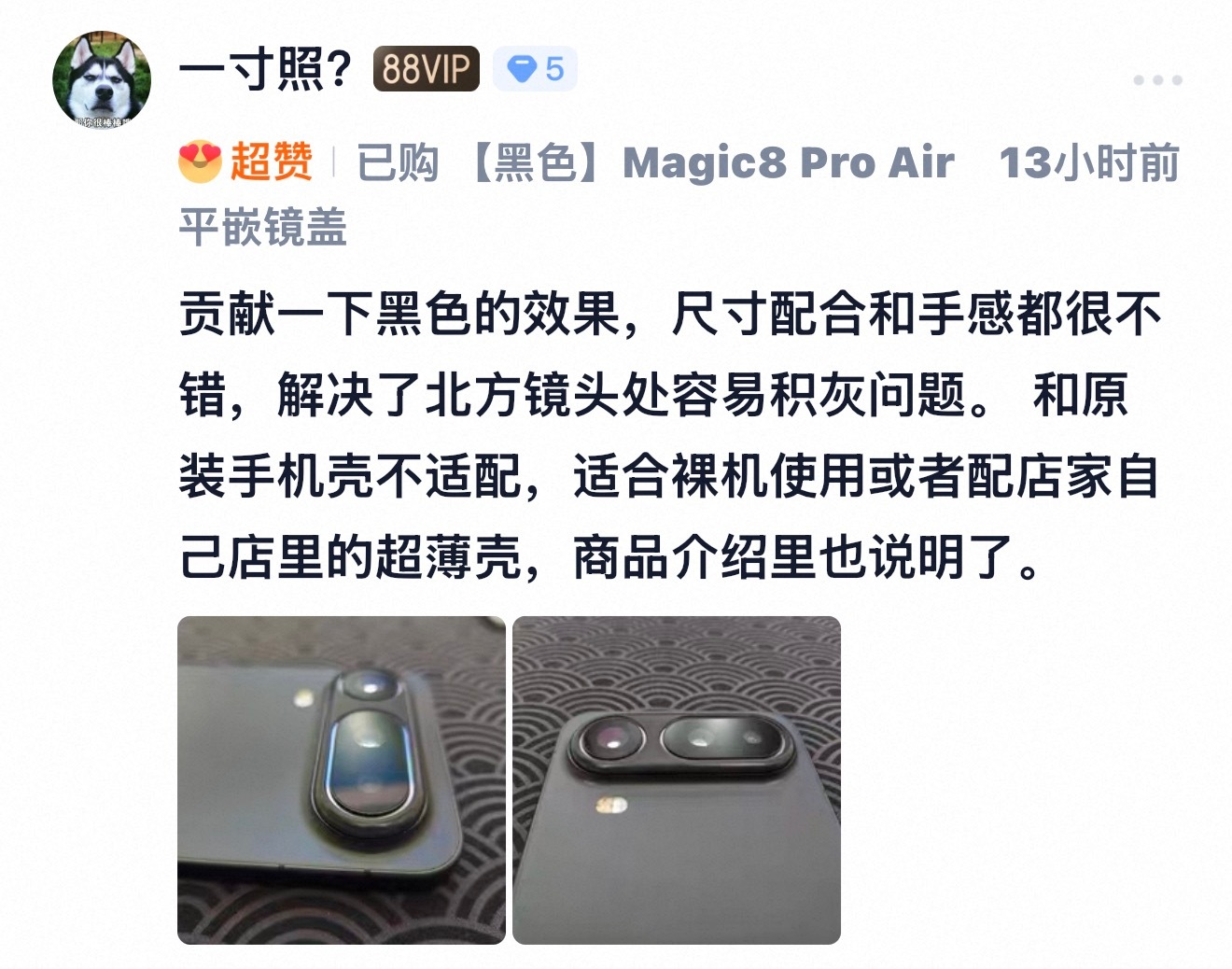 Magic8 Pro Air 平嵌镜盖搭配超薄壳晒单边缘也是大弧度设计,圆润,好看。