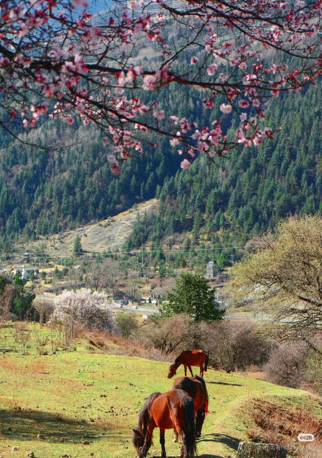 📍热瓦村:杏花与藏寨完美融合,白墙红壁花窗配粉杏,色彩对比绝了,超适合拍人文感人像大片,随手一拍都是藏式浪漫