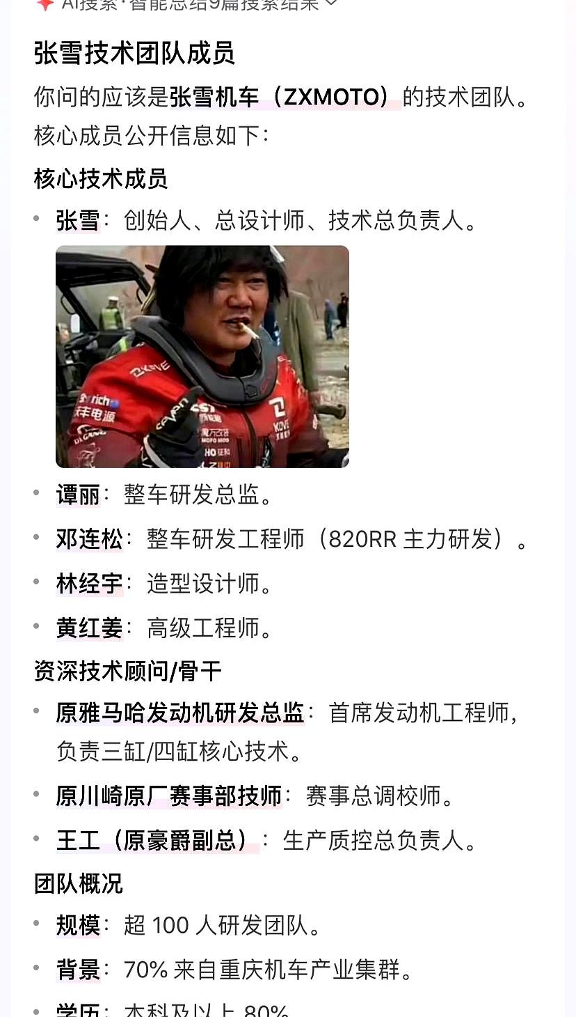 钱江拿下意大贝纳利的技术团队,也做一定研发;张雪820rr直接把人才请到台前:原雅马哈发动机总监盯三缸、四缸核心,原川崎赛事部技师做赛事总调,豪爵原副总抓机车质控,分工像齿轮,咬得紧。