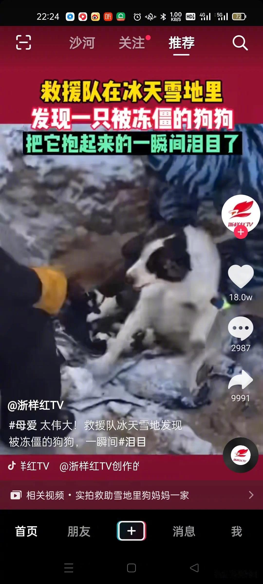 冰天雪地里,蜷缩着一只狗,几乎要冻僵了。救援人员发现后,立马将她抱起,眼前的一幕惊呆了所有人!原来在狗狗的身下,还有一窝嗷嗷待哺的小狗。原来这是狗妈妈在用自己的身体给宝宝们御寒[泣不成声]狗妈妈被抱起的时候,不断挣扎着,眼睛一刻不停地盯着她的孩子们,生怕他们受到伤害。母爱真的是跨界一切物种的一种感情,甚至有些人都还不如她!这一幕,感动了救援人员,也看哭了一众网友[流泪]
