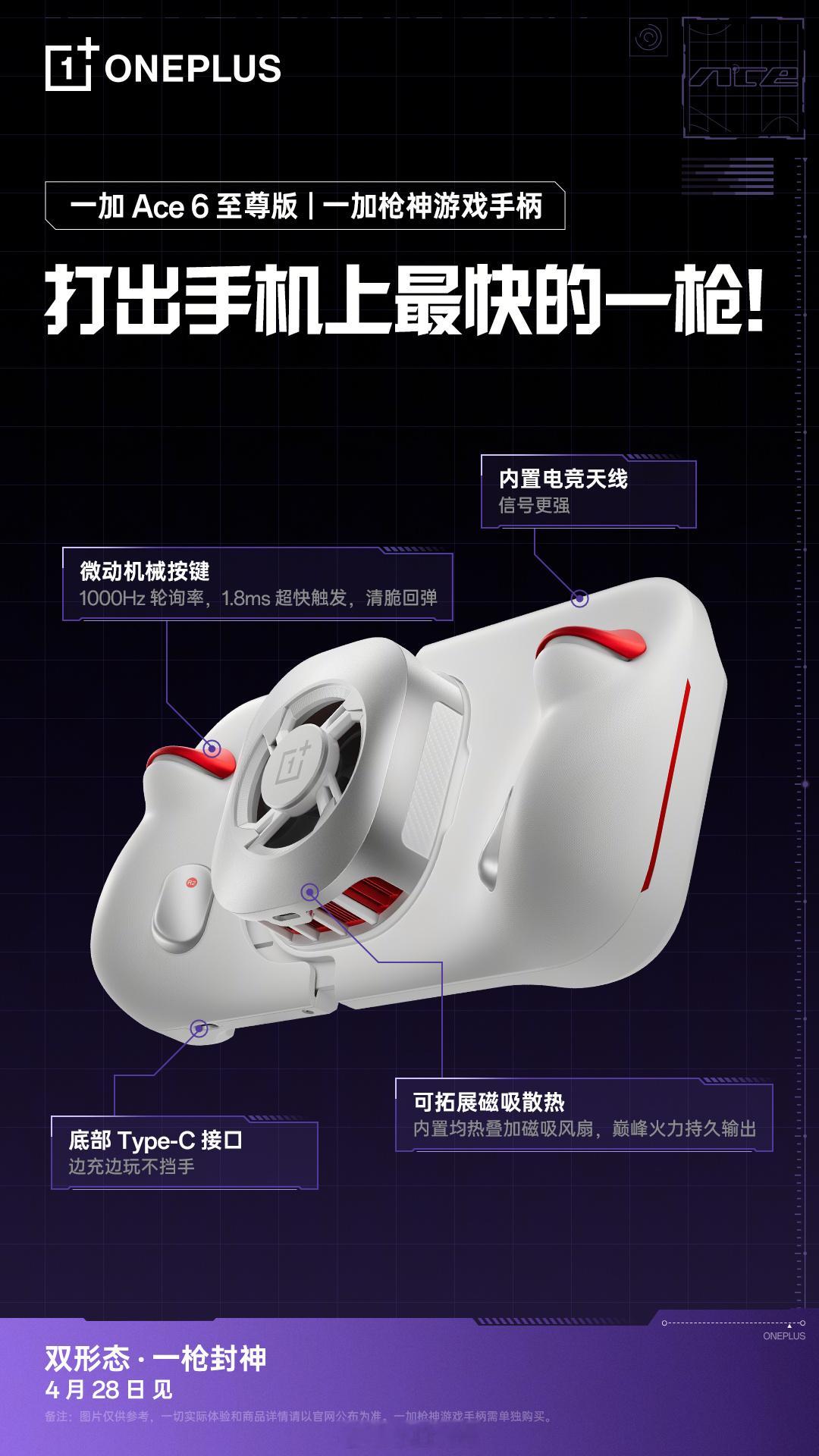 一加 Ace 6 至尊版定档4 月 28 日 19 点发布还有个一加枪神游戏手柄