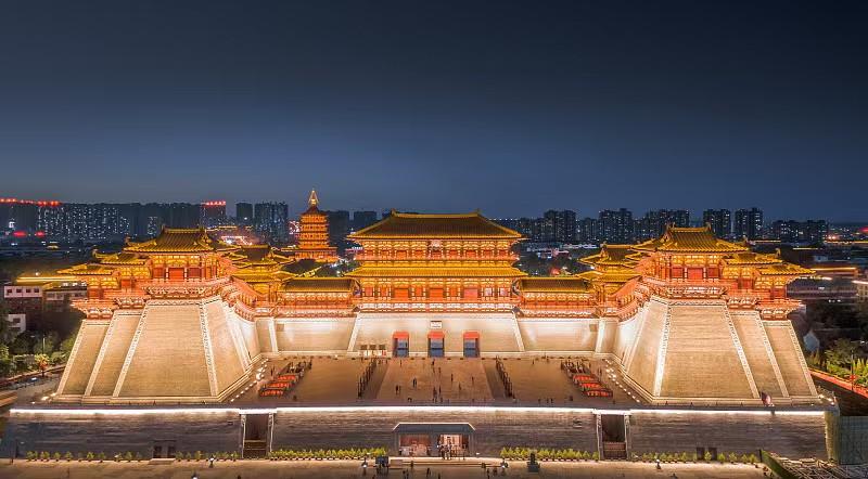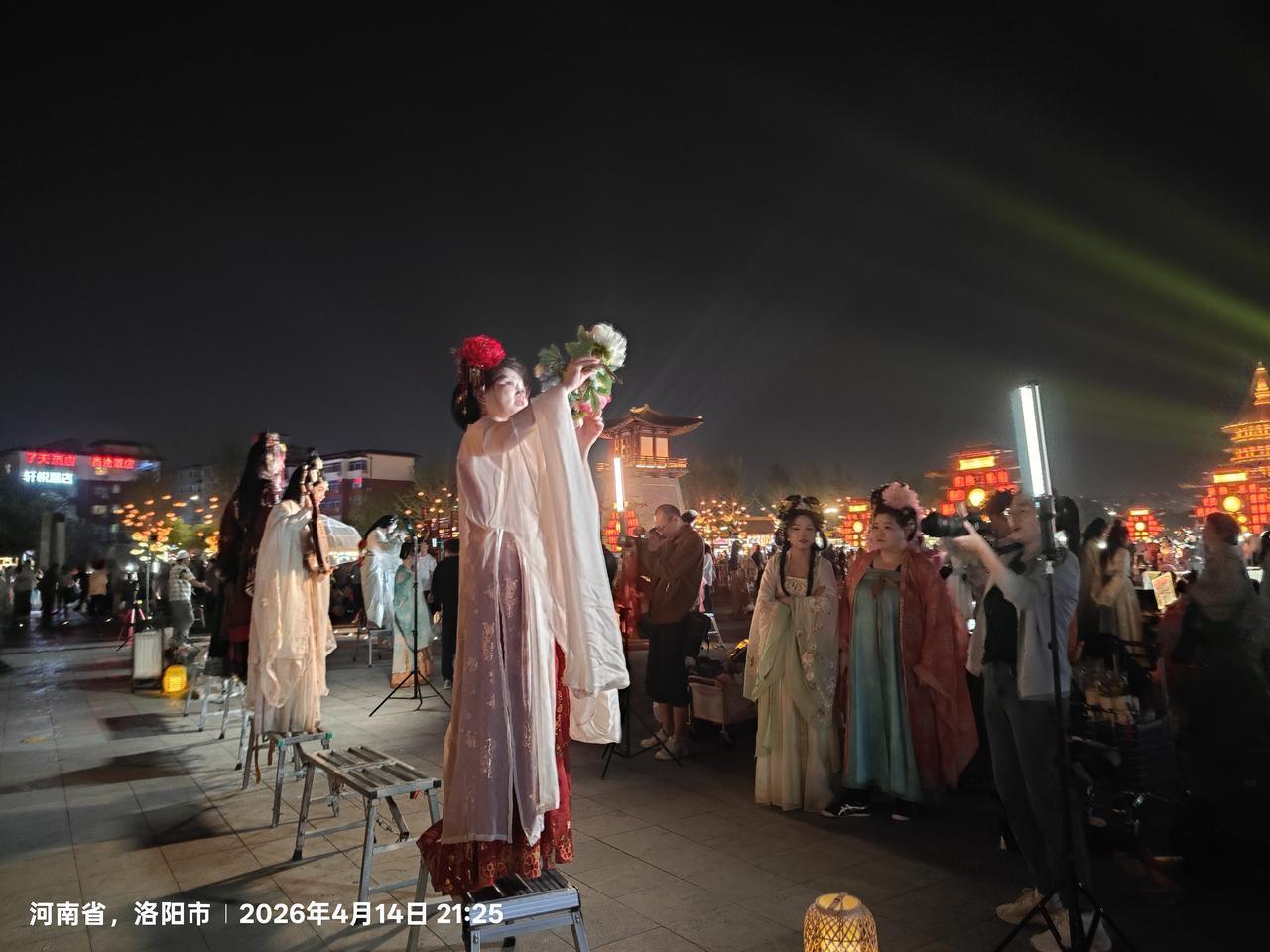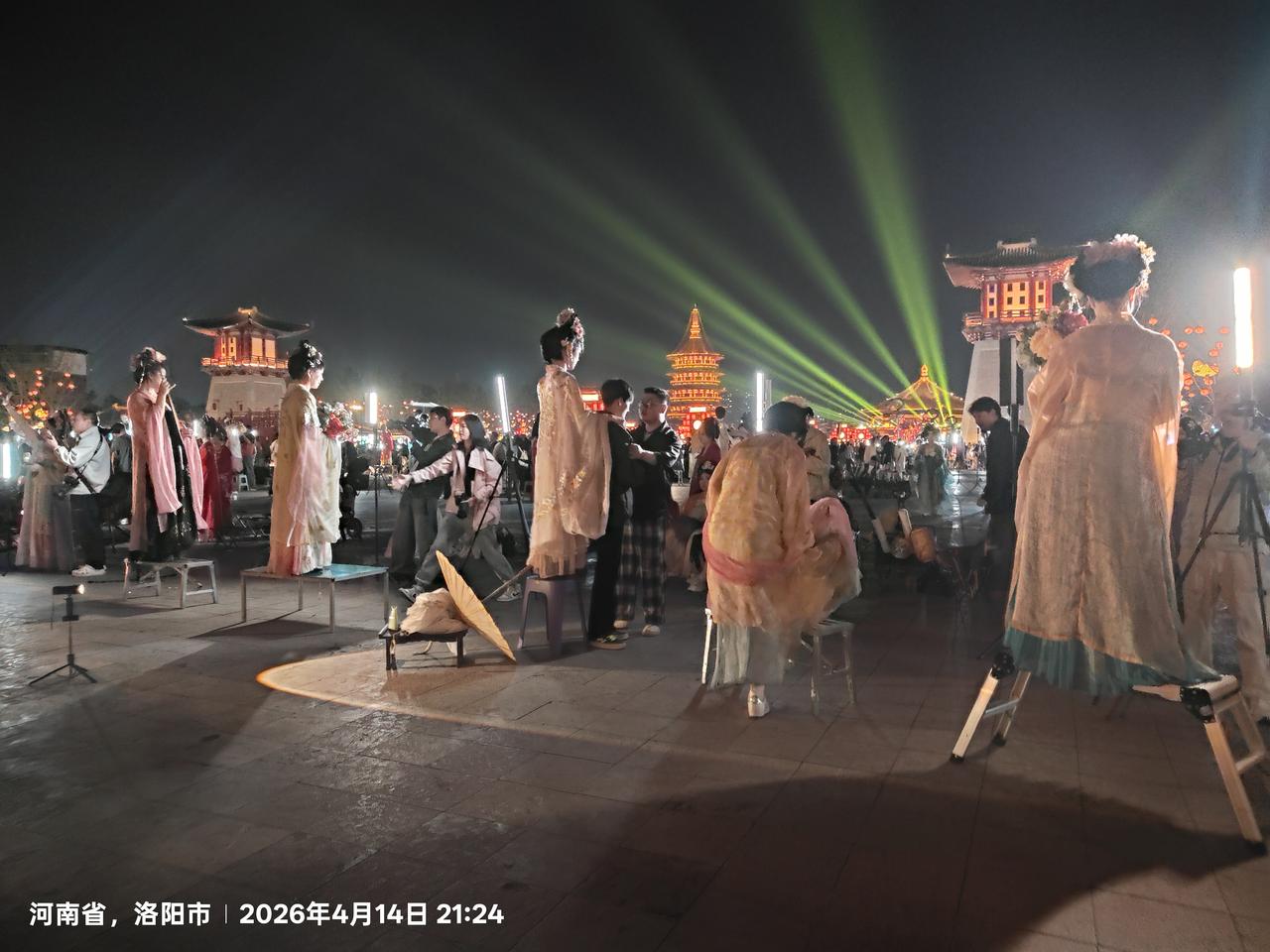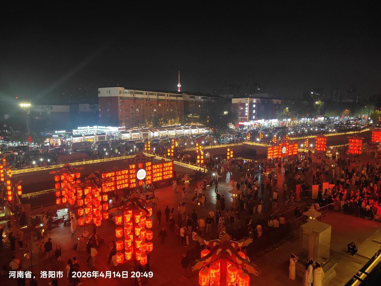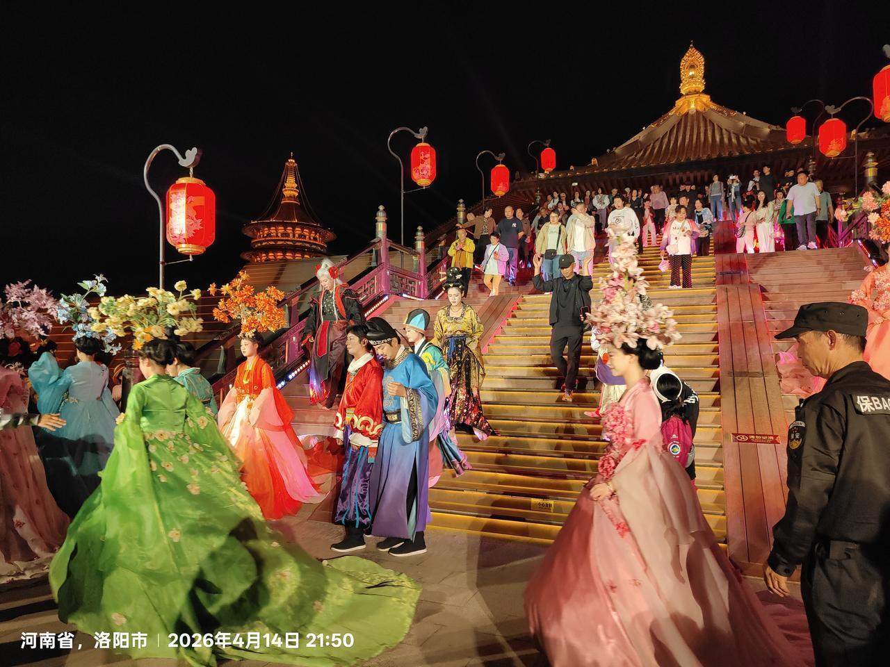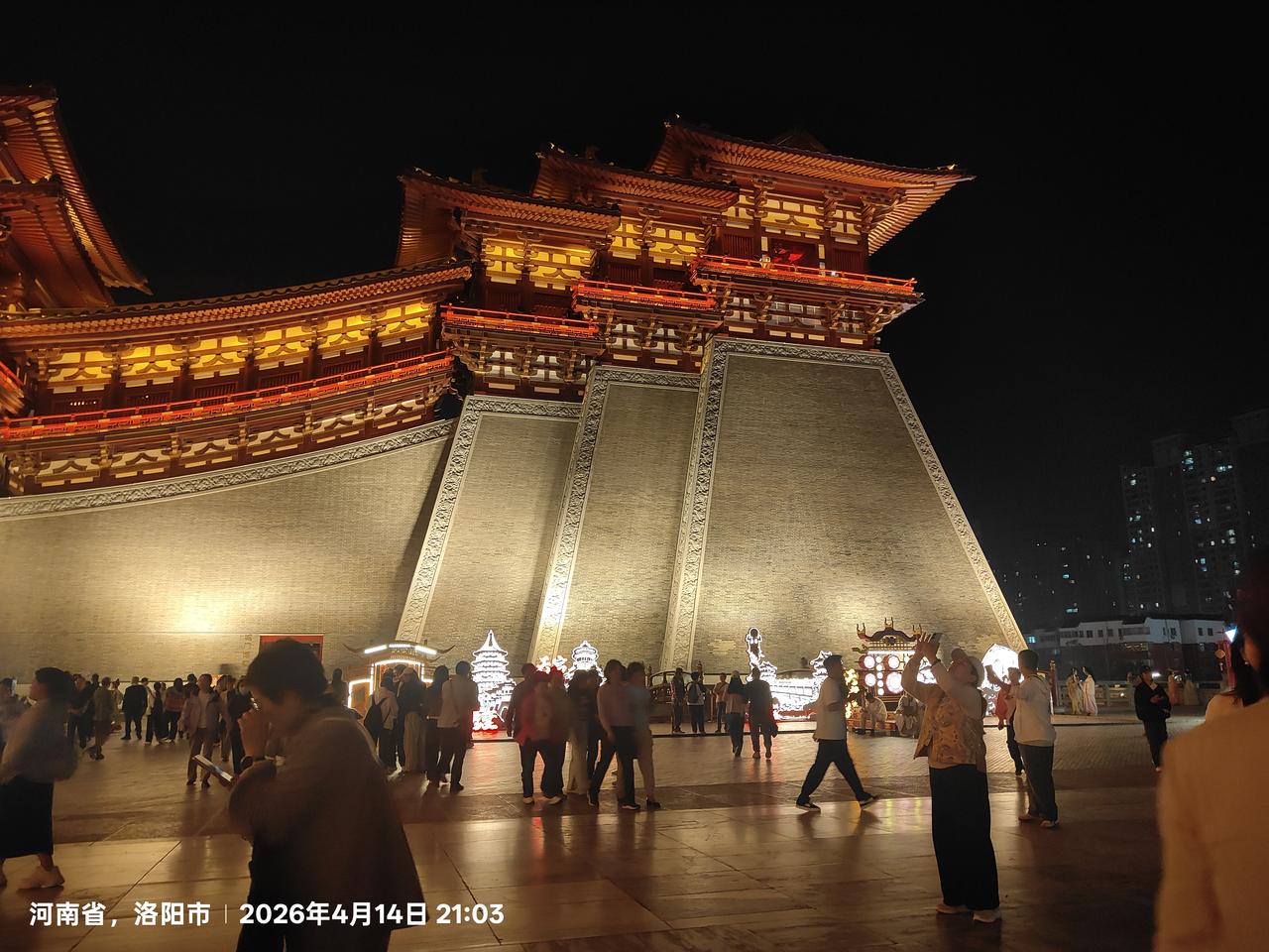 夜幕下的应天门,华灯初上,金碧辉煌。飞檐翘角如鲲鹏展翅,斗拱层叠照千年风华。朱红宫墙在光影里庄重又温柔, 两岸霓虹倒映,晚风轻拂,老街灯笼摇曳,游人笑语相迎,很多小美女身穿汉服,行走在人群中,让人感觉时空穿越隋唐,一派盛世繁华景象。