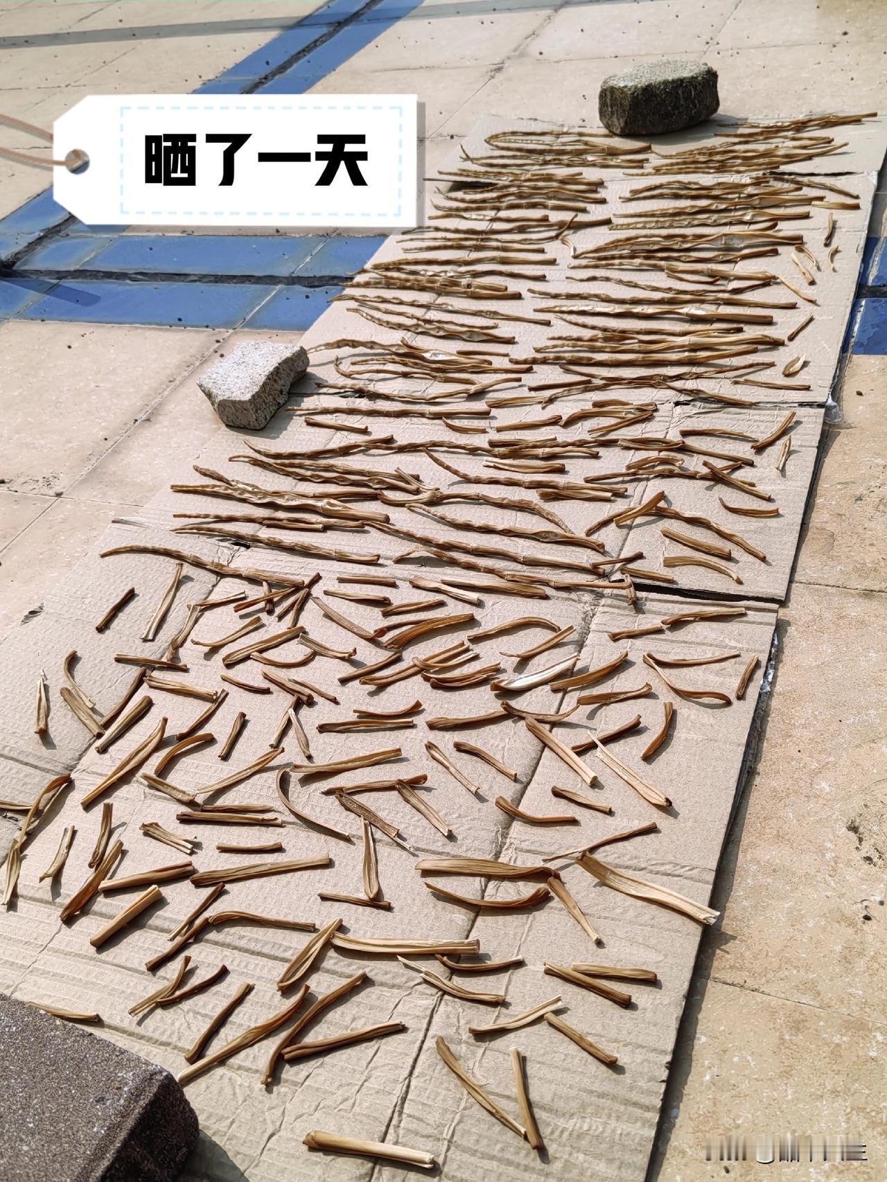山里搞的嫩笋,听了朋友的建议,把它晒成笋干,一来保存方便,二来保质期可以更长。原本水汪汪多汁的春笋,随着太阳的暴晒水分急速蒸发,就剩一丁点了,计划是要晒两天,晒完今天应该就可以了,晒到那种干透的情况,根据我自己的推测,前后的体积起码缩水 80% 以上。我也是第一次干这事,不知道晒成笋干后再拿出来吃,口感会不会差很多?一直都觉得,新鲜货肯定是最好吃的,最好是刚拔下来 一天内就把它吃掉,只可惜这次拔的有点多,根本吃不完,所以笋干计划也是不得已的操作。