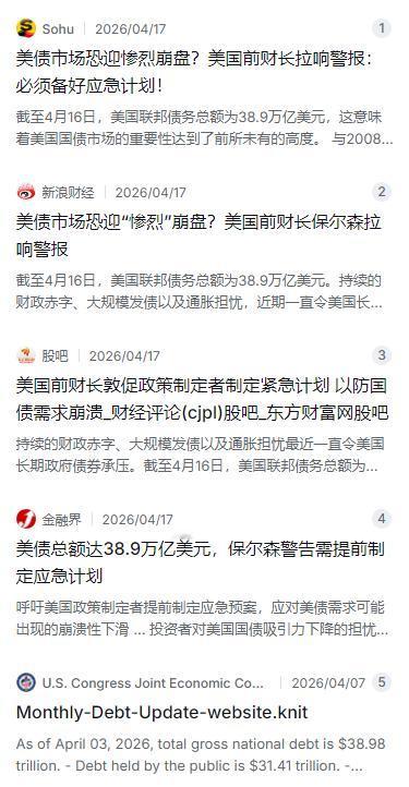 截至2026年4月,美国联邦债务总额已经正式捅破了38.95万亿美元的大关。这数字大到什么程度?光每天一睁眼,美国政府什么事儿不干,光国债利息就要掏出将近30亿美元。根据美国国会预算办公室的预计,2026财年美国国债净利息支出将首次突破1万亿美元。这个数字已经超过了一年的国防预算。纳税人缴的钱,大半先填了利息的窟窿,财政直接陷入了恶性循环。