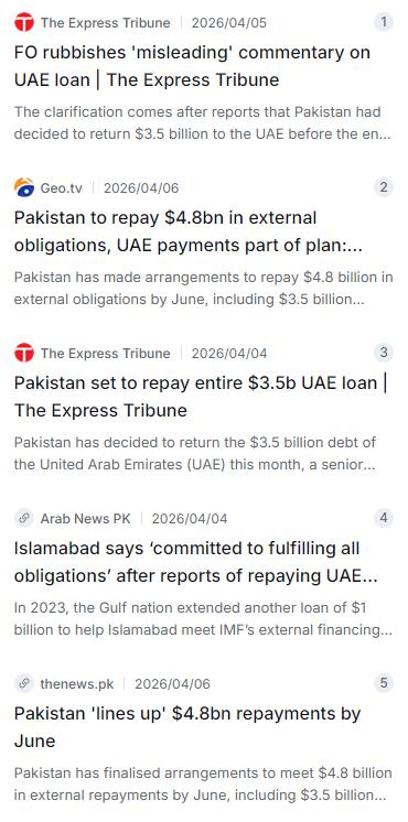 以前阿联酋还算好说话,每年都给延期。但从2025年底开始,情况变了。12月份阿联酋只给了1个月的延期,后来又加了两个月,2026年1月到期的两笔10亿美元也各只延了一个月。到了2026年4月,阿联酋干脆不再续期,直接要求巴基斯坦一次性还清全部35亿美元。