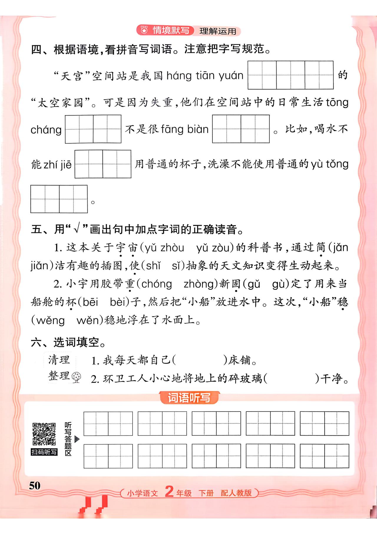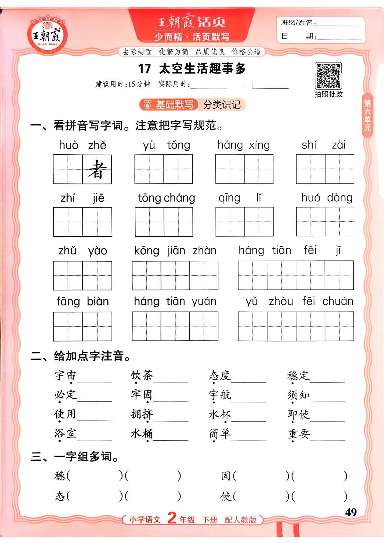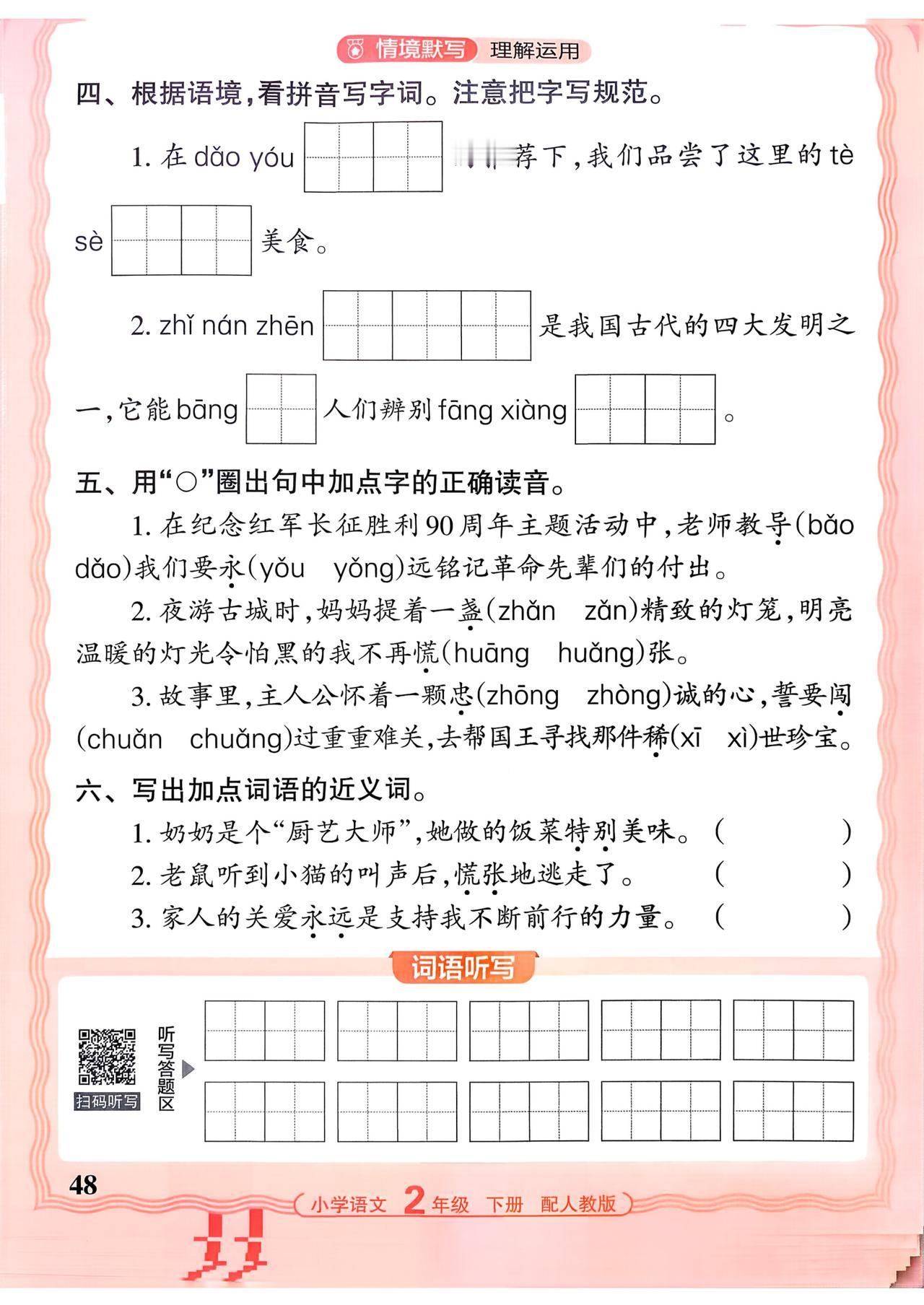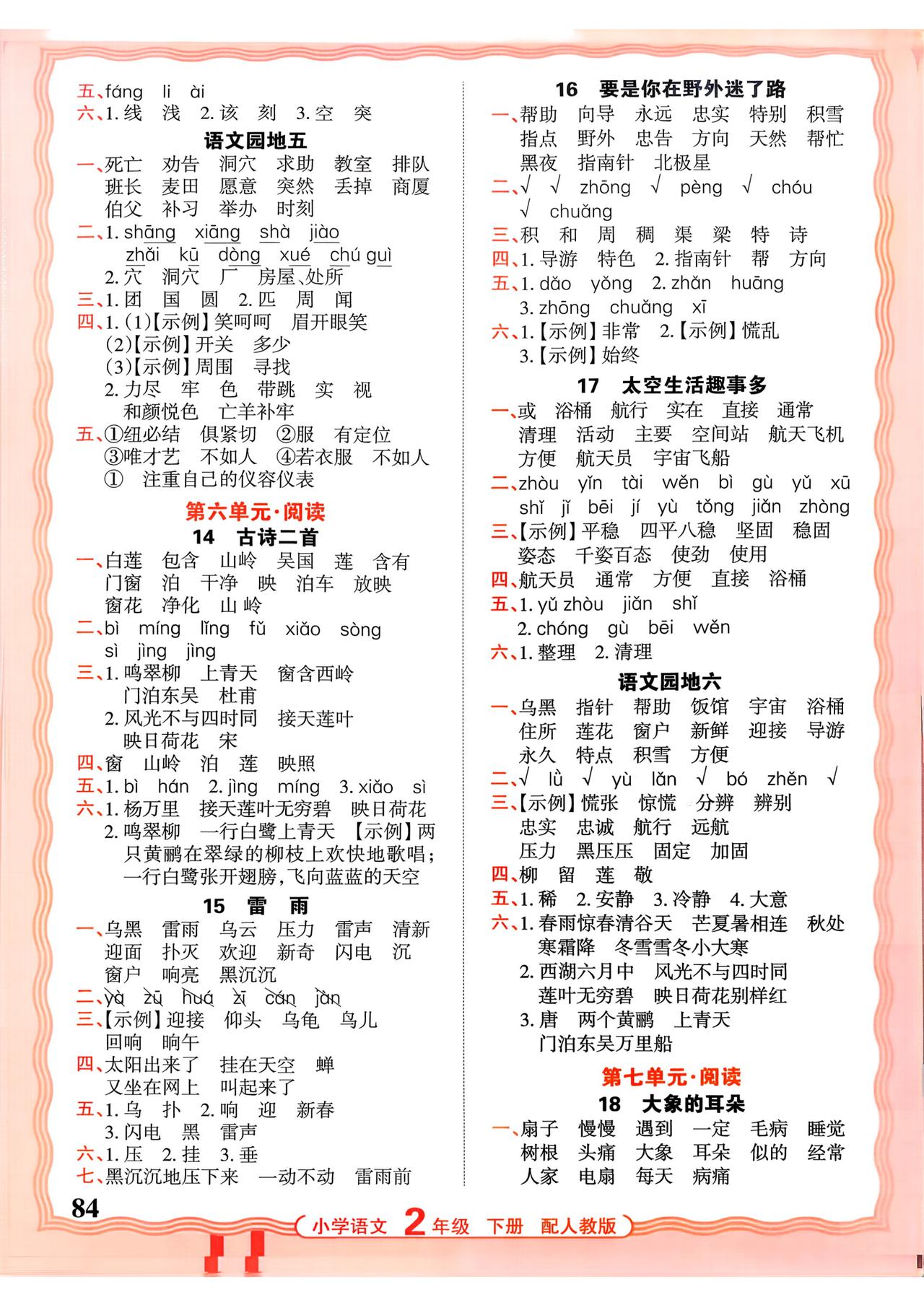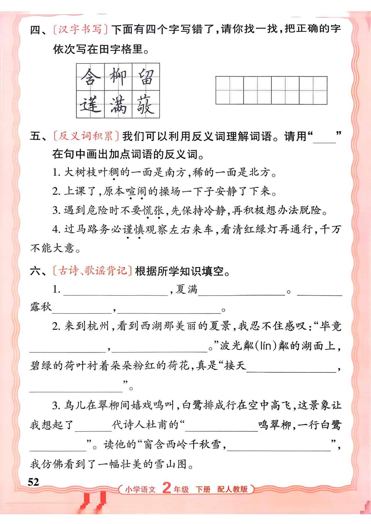 26春二年级下册语文,第六单元基础知识活页默写+参考答案,收藏备用