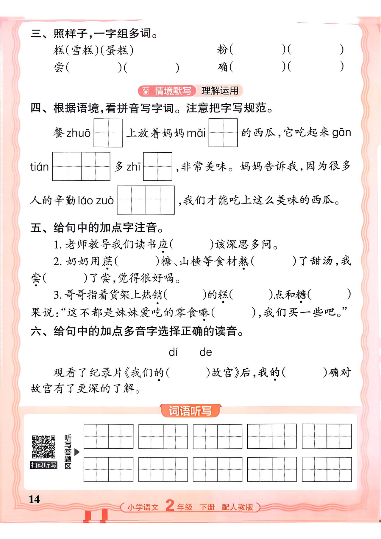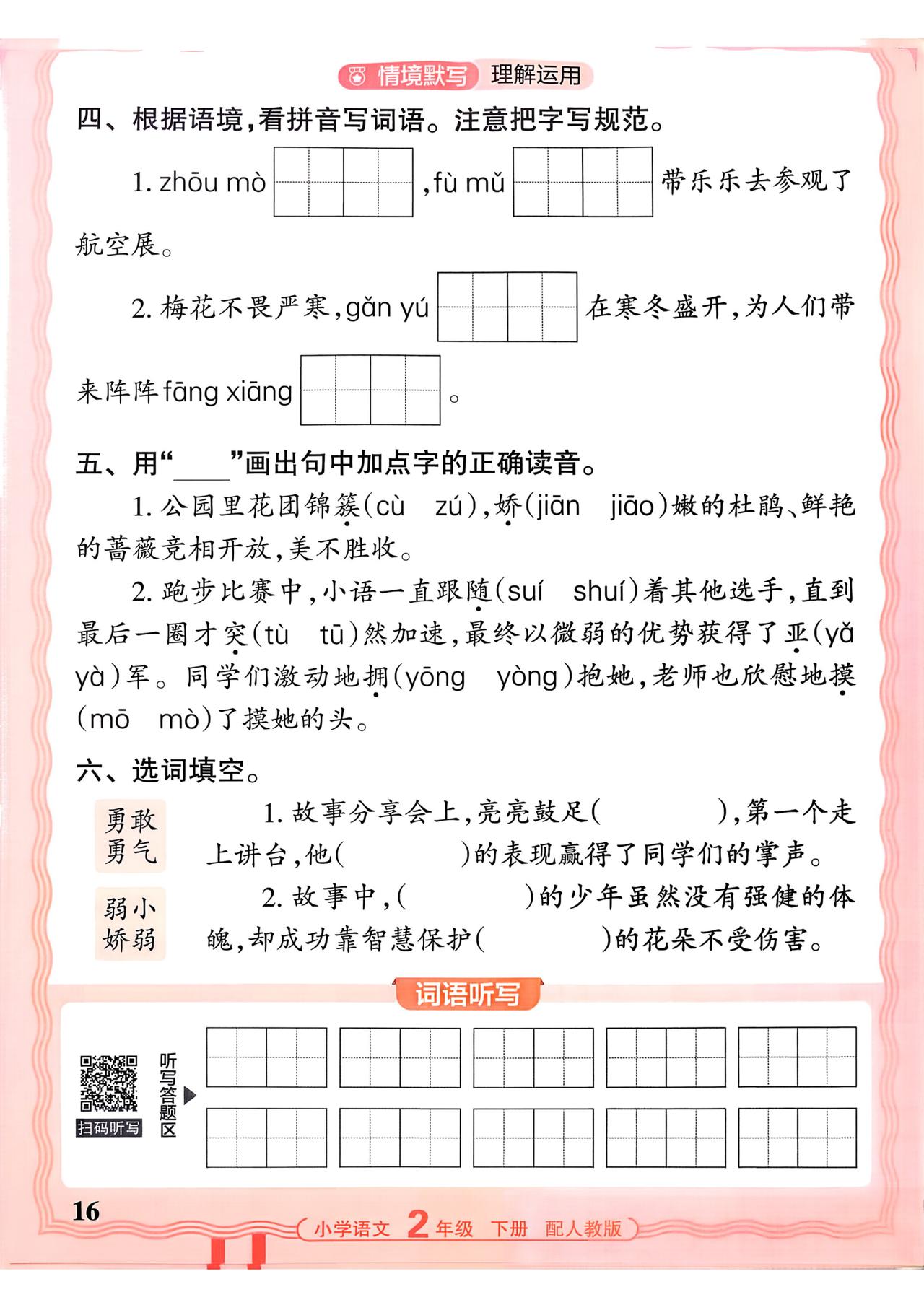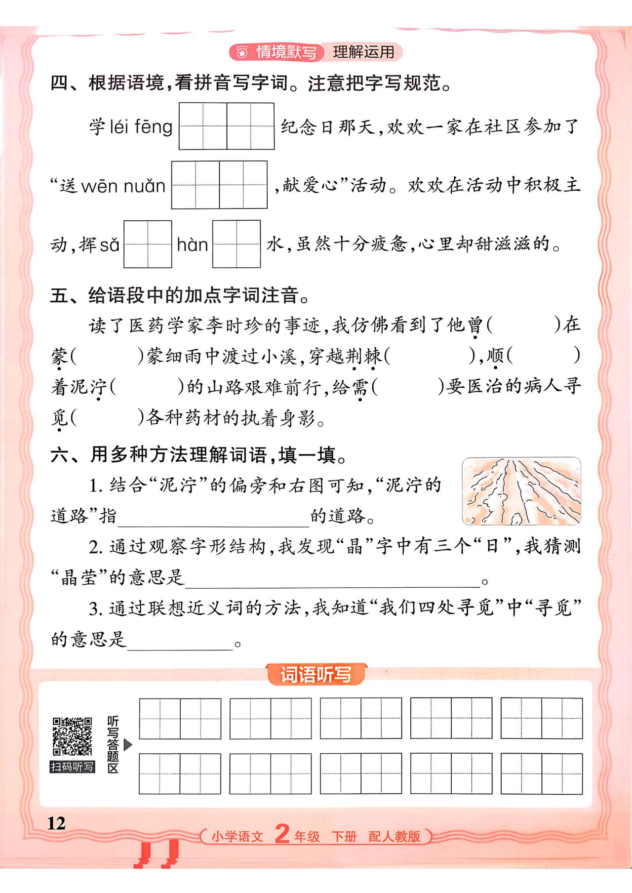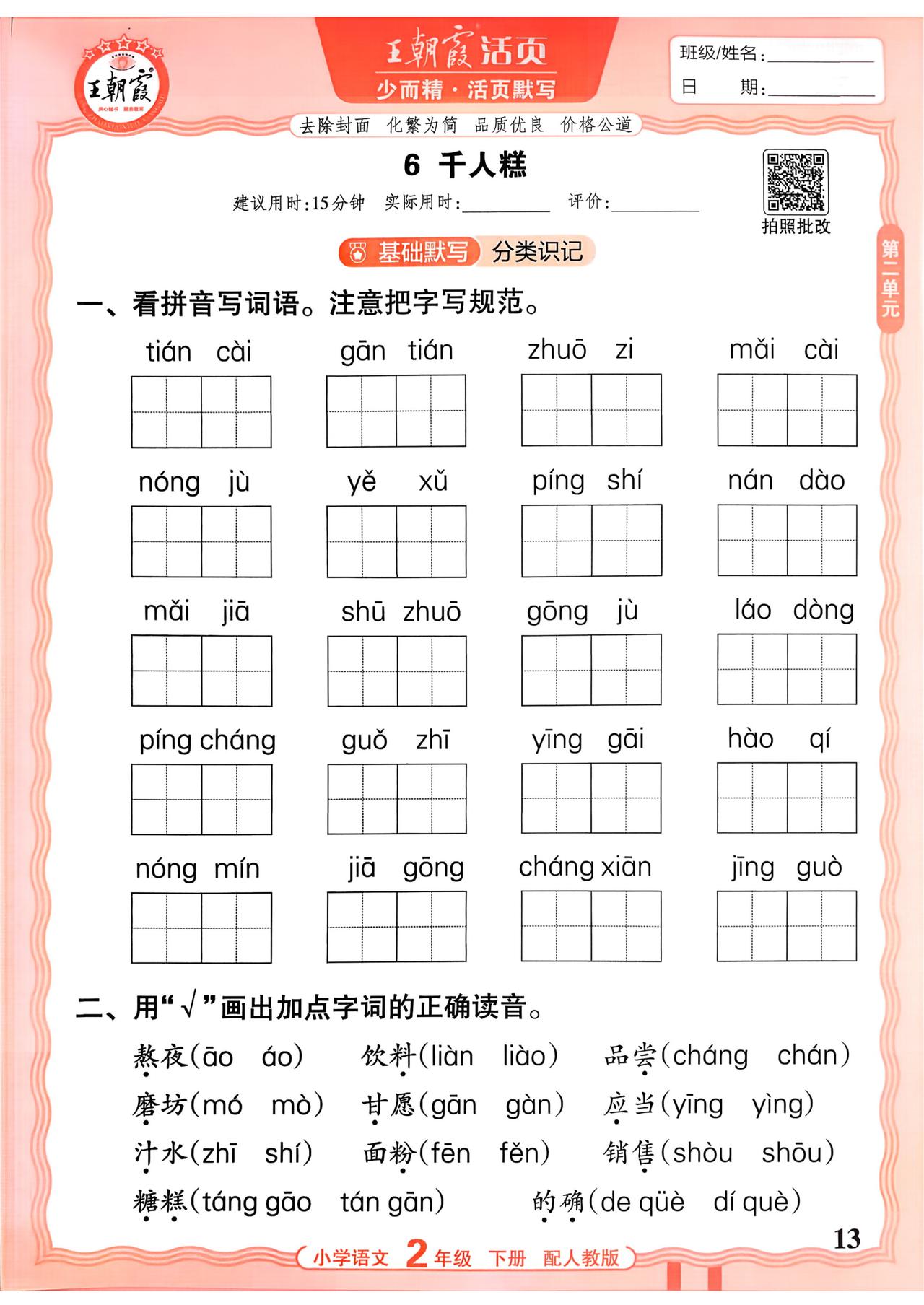 26春二年级下册语文,第二单元基础知识活页默写+参考答案,收藏备用
