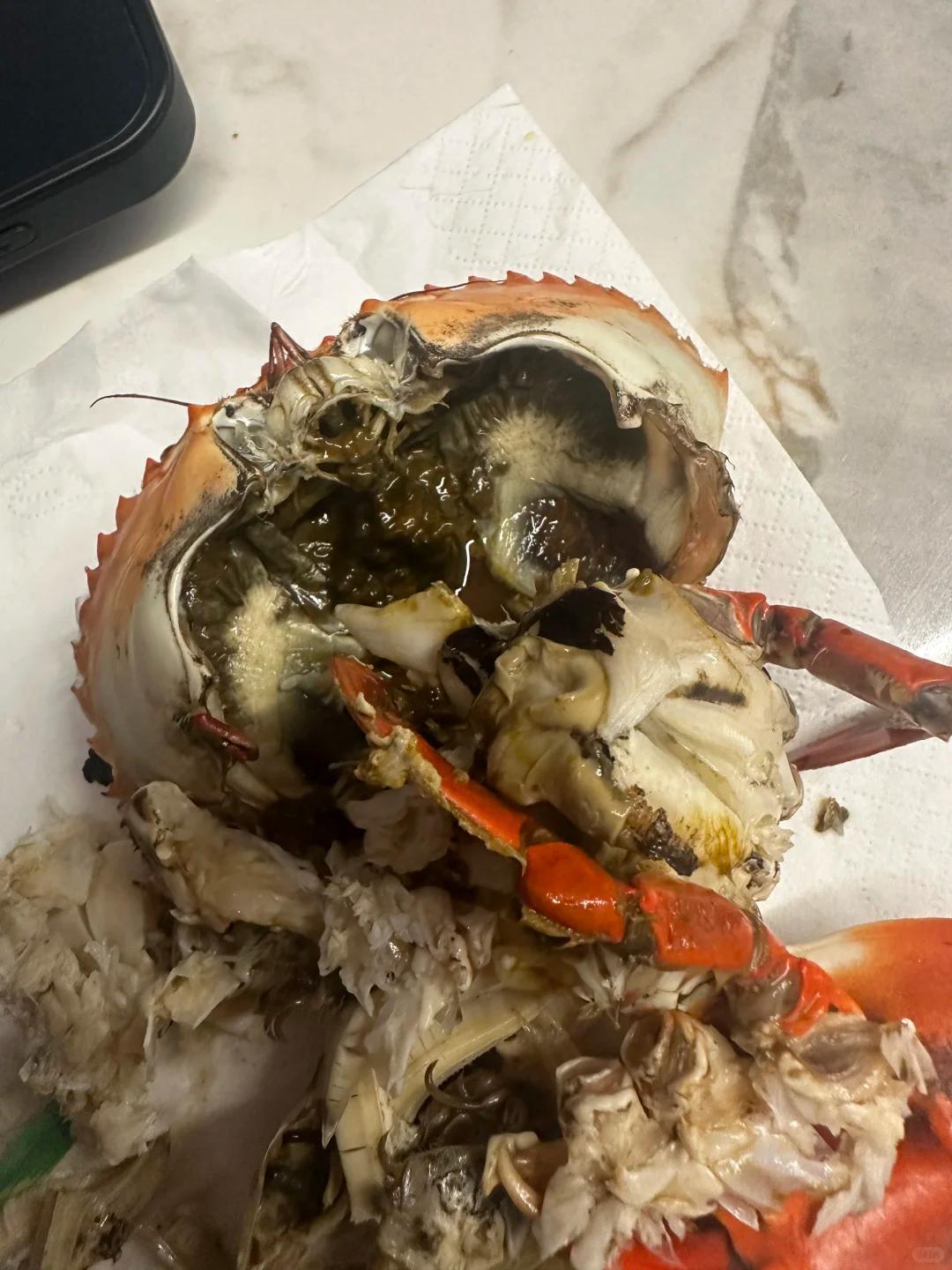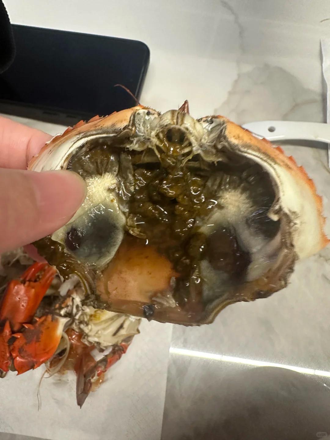 更让人失望的是,这些青蟹不仅发黑,肉质也极度干瘪,大多是空壳,没什么肉。