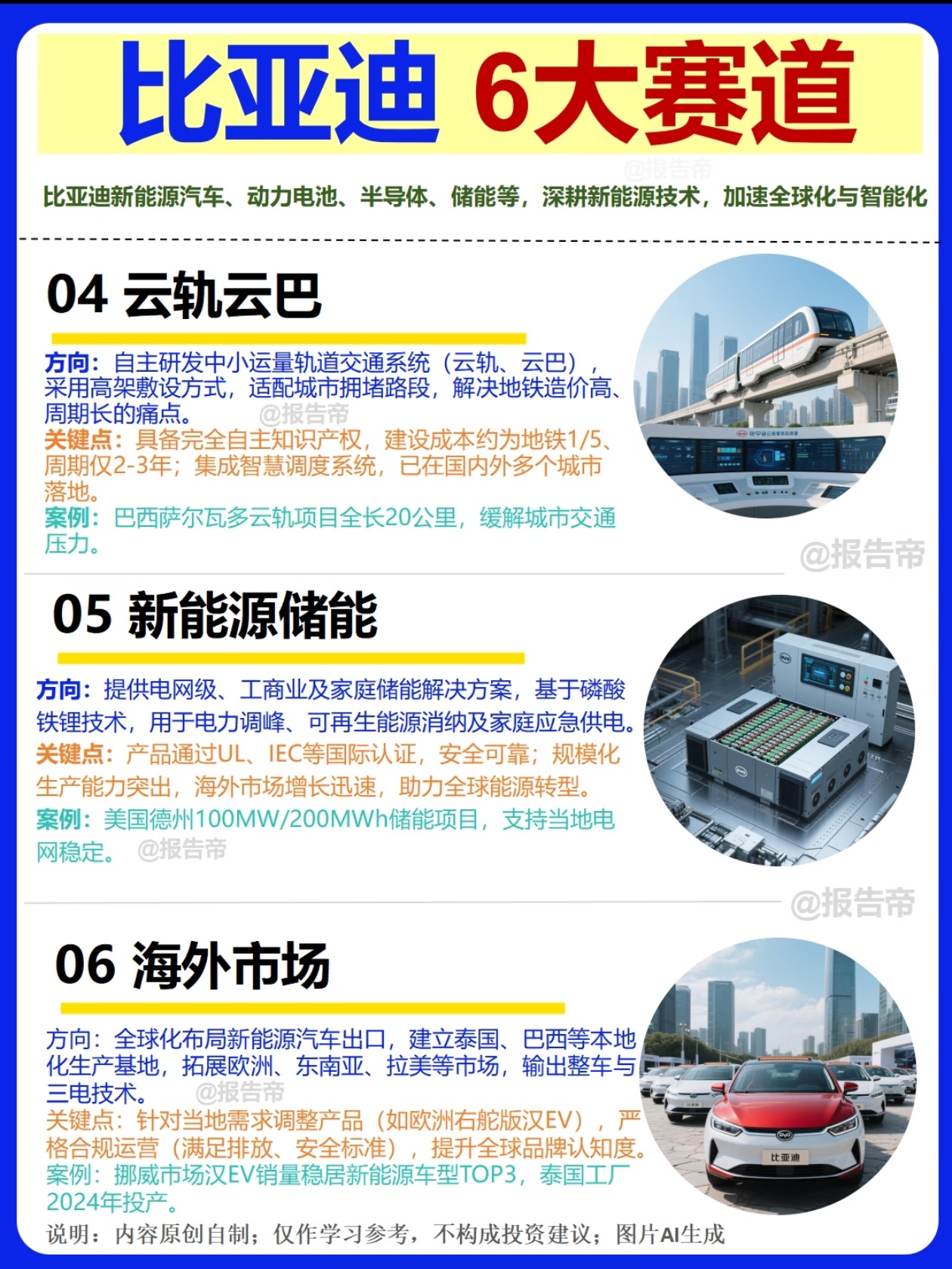 家人们!比亚迪这波直接甩出6大核心赛道,从新能源汽车到储能,从半导体到云轨,每一个都戳中当下风口!