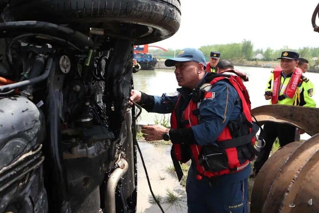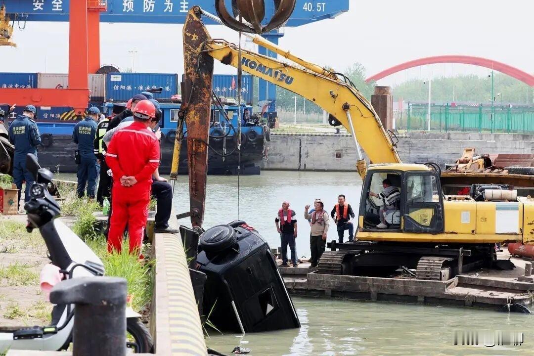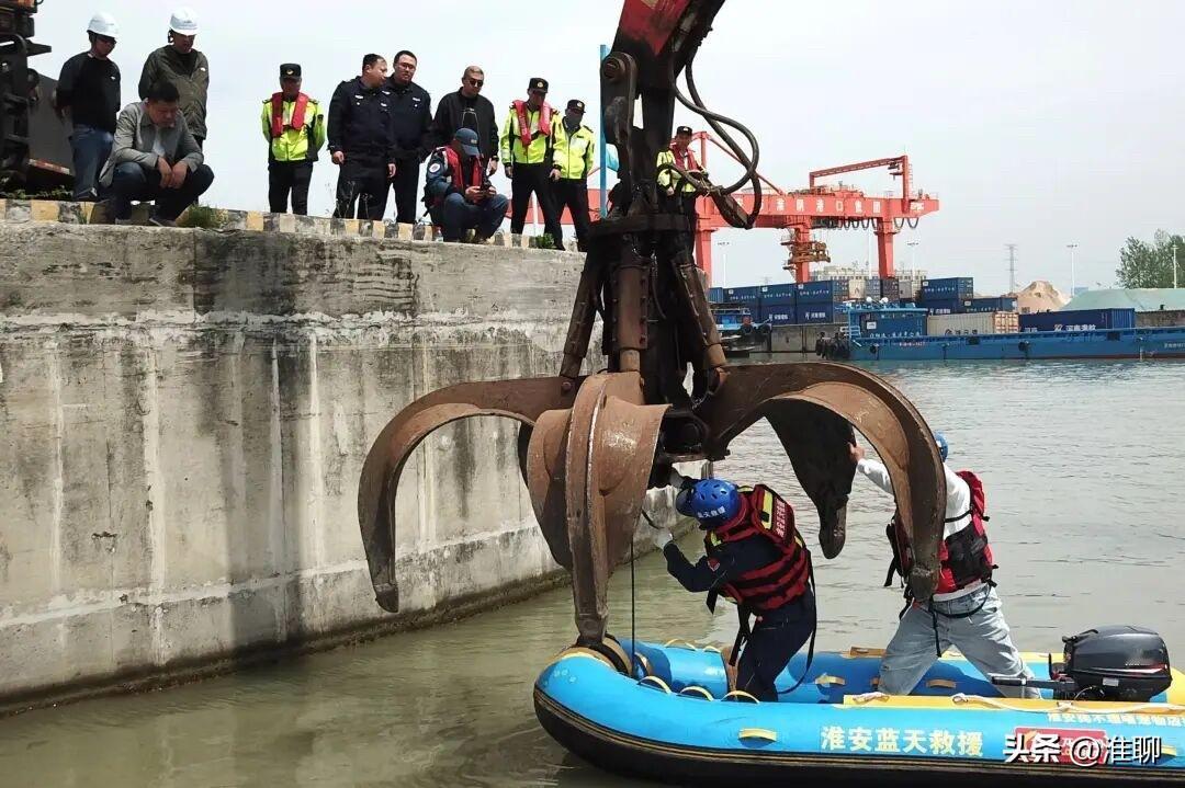 4月18日11时许,经过淮阴区交通、公安和淮安蓝天救援队等单位,耗时25小时的联合搜寻、打捞,一辆沉入河底的辽宁籍越野车被顺利打捞上岸。4月17日10时许,一名男子驾车不慎,越过河堤坠河。淮安市港口物流集团淮阴运营有限公司员工何刚等人发现险情,连忙联合周边船舶装卸作业人员施救并拨打12395海事报警电话。约3分钟后,一名船老大手持铁锹拍碎车顶天窗,将落水男子救援上小舟,该男子身体无恙。