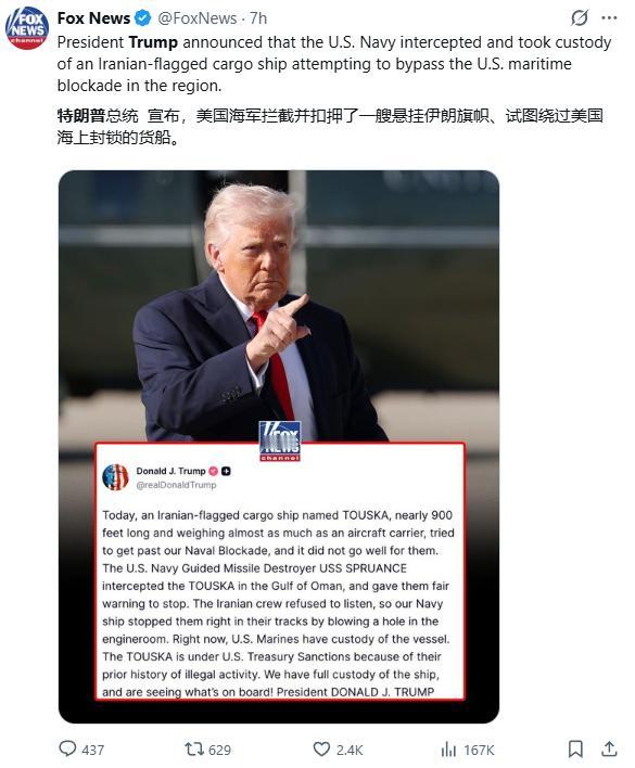 霍尔木兹海峡本来就敏感,全球能源运输的一条命脉,谁掐住,谁就有发言权。美国这次直接动手扣船,等于把封锁从“喊话威慑”推进到“实操执行”,动作不大,信号很重。