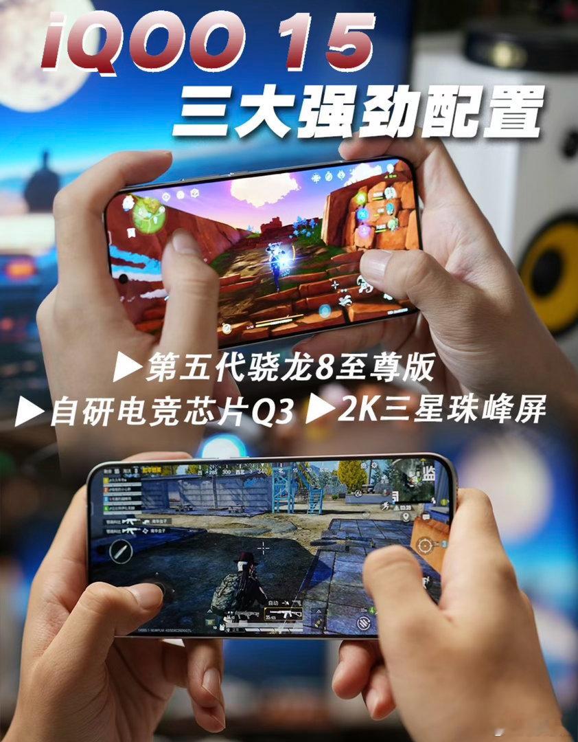 谁懂啊!用了iQOO 15之后,我才知道什么叫“游戏手机天花板”!第五代骁龙8至尊版+自研电竞芯片Q3,玩原神开2K超分+光追,画面直接像开了外挂一样细腻,帧率稳得离谱。2K三星珠峰屏真的绝了,6000nit峰值亮度,大太阳底下玩也看得清清楚楚,而且护眼模式2.0对熬夜党太友好了,眼睛再也不酸了。还有7000mAh大电池+100W快充,边玩边充都不发烫,出门完全不用带充电宝。这配置,我直接焊死在游戏手机里了!iqoo15