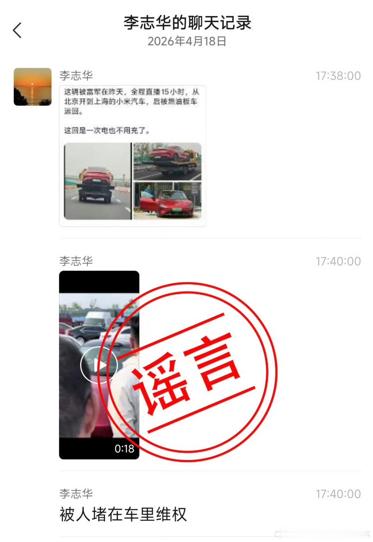 小米徐洁云喊话造谣者难以置信🤦♂️在全程全网直播同时有这么多车友都在现场见证的情况下,居然还能够通过私域进行凭空的造谣抹黑攻击,开眼界毁三观的同时,这位李志华希望他在张口就造谣的时候,能有接受相关后果的准备
