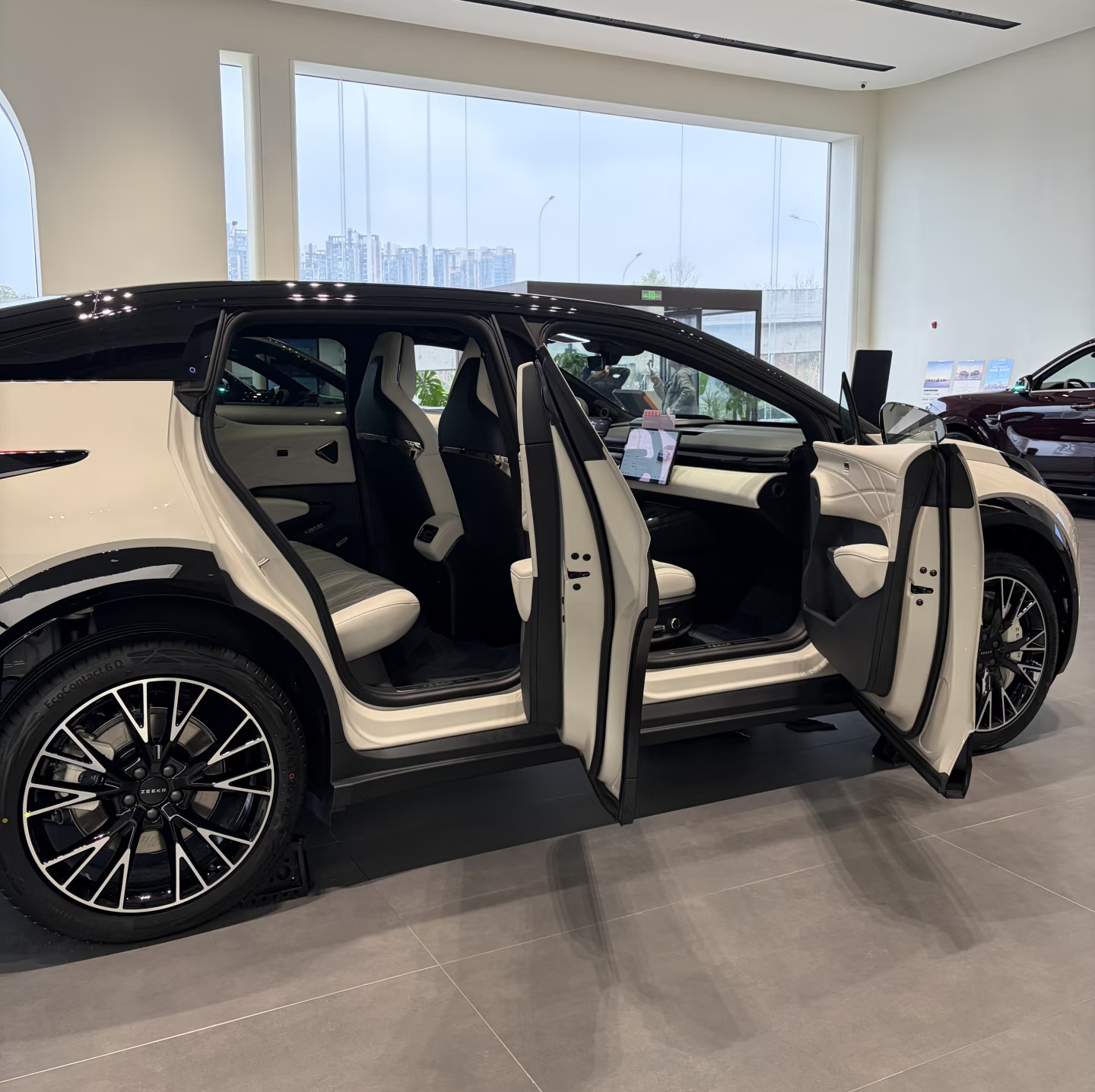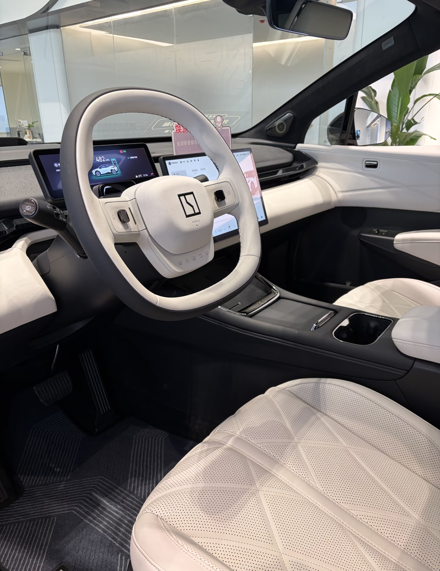 其实是极氪X的“四轮转向”没给,但给了个更怪的——中控屏能像抽屉一样滑到副驾面前。后排座垫能电动向上翻折,腾出空间放个高个子背包。门把手藏进B柱和C柱,按一下弹开。方向盘后头那个小屏幕,导航信息会自动翻转。车长只有4米4,转弯半径挺小,窄路调头不用倒两把。