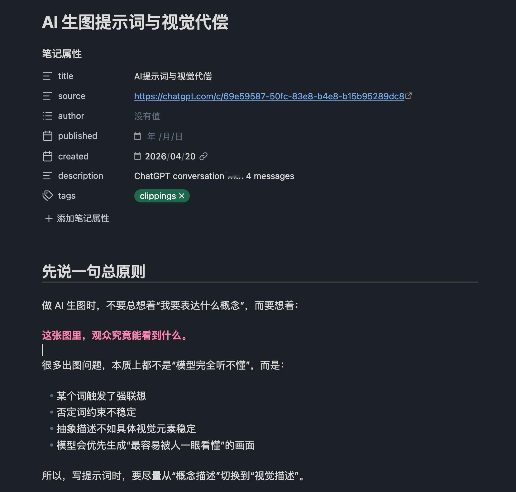 把文稿转录下来 ——> 让 AI 清洗一下 ——> 送给 ChatGPT,分析这个教程 ——> 然后让它总结下技巧 ——> 把对话中的精华部分存到 Obsidian ——> 拿着精华部分去更新、新增 skill