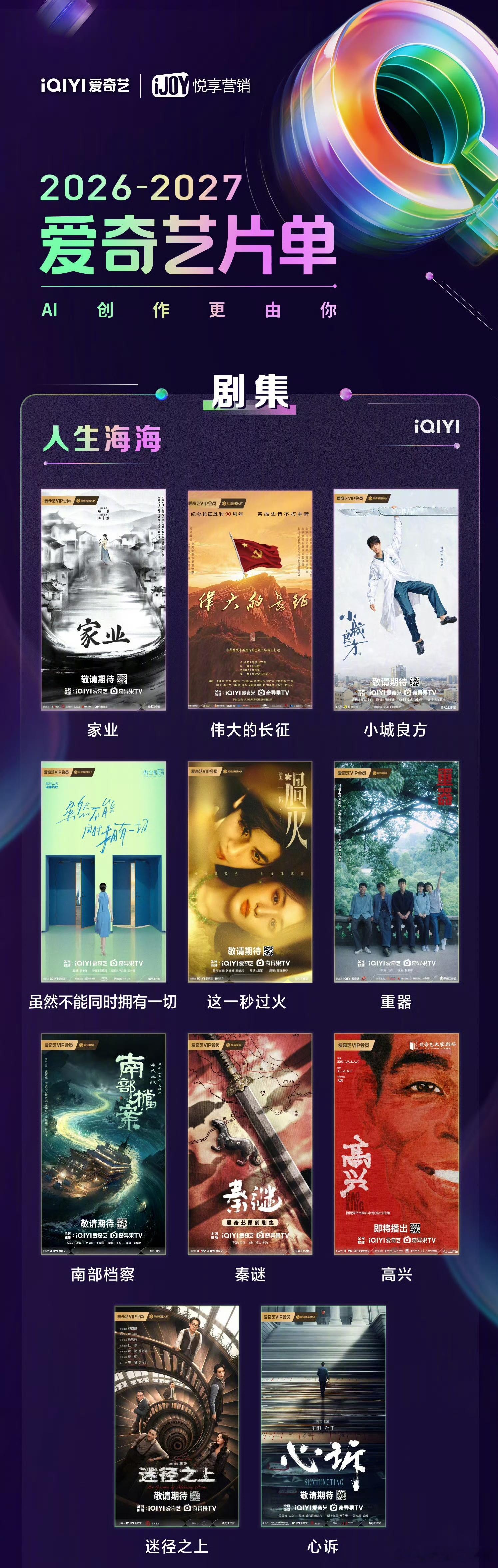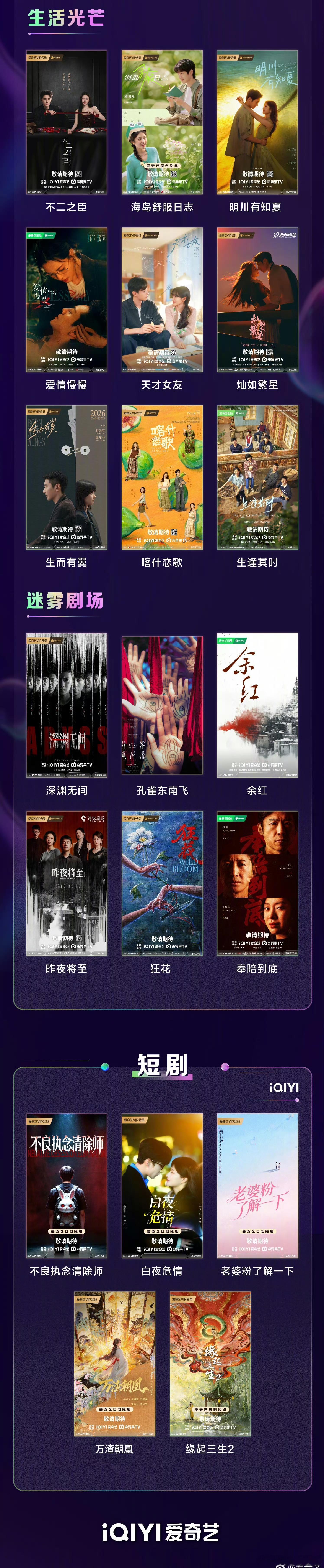 刚看了2026爱奇艺造梦片单里,基本都是短短的剧名了,能两个字表达的绝不三个字…