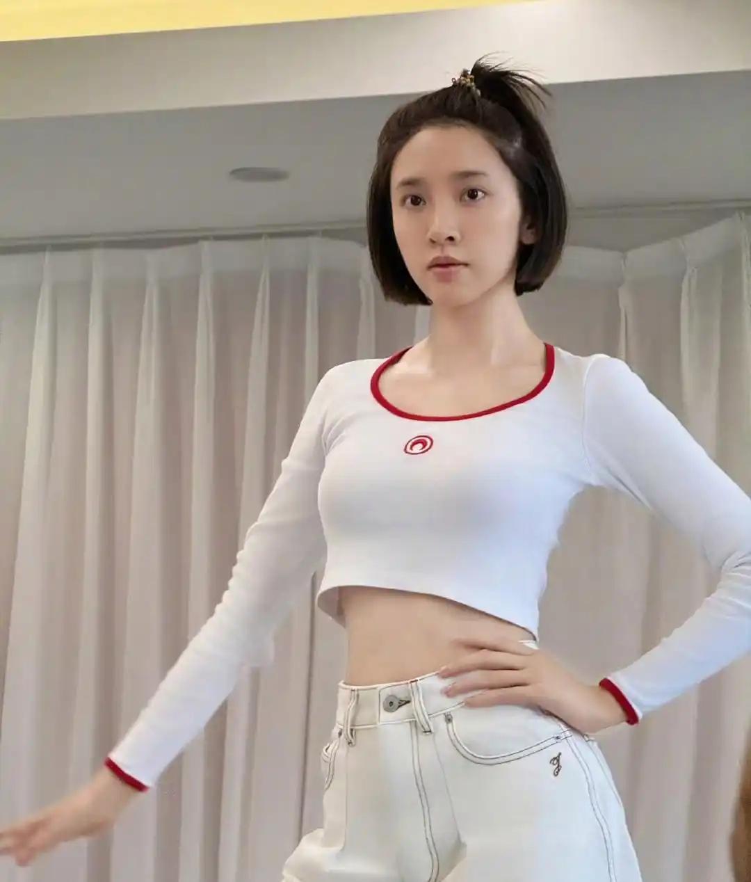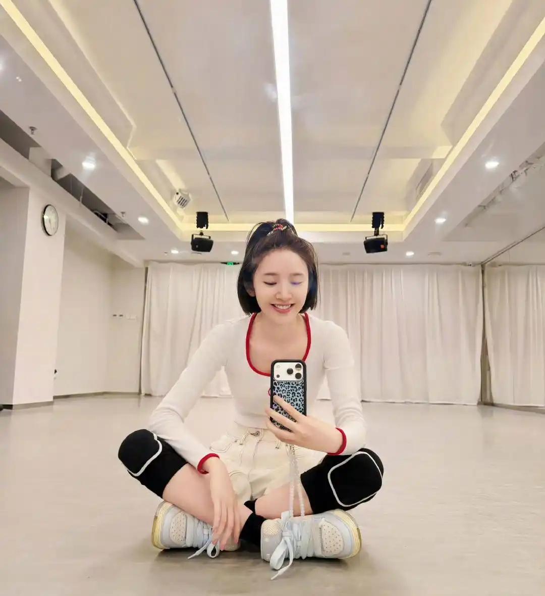 唐艺昕晒出乘风2026训练图,短发可爱减龄,白色运动装清爽性感,红蓝撞色设计增添