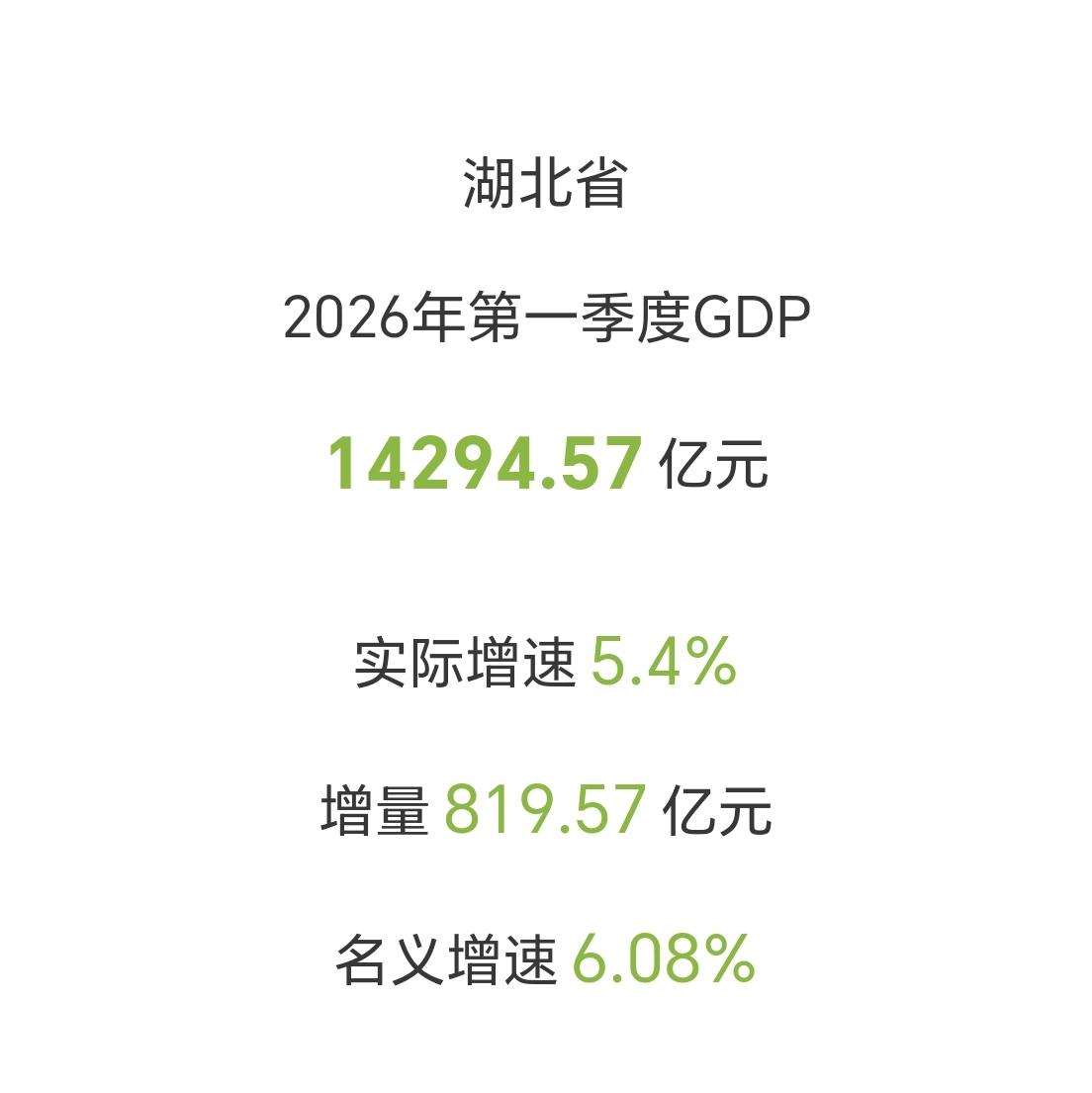 【2026年一季度,湖北省GDP超过1.42万亿元,增量超过810亿元】