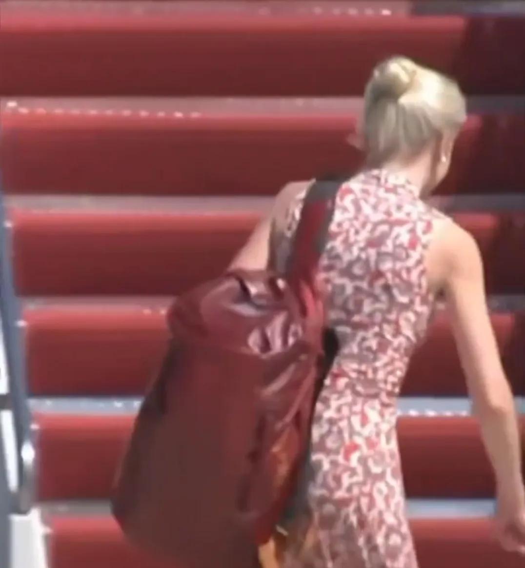 这位金发美女是专门为懂王打印文件的人,她背着移动式打印机、纸张、电脑,随时为懂王