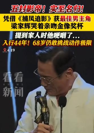 说白了,68岁,本该是含饴弄孙、颐养天年的年纪,可梁家辉却在第44届香港金像奖颁奖典礼上,用颤抖的双手捧着那座沉甸甸的金像奖杯,像个孩子般哭着亲吻,有点让人意外。