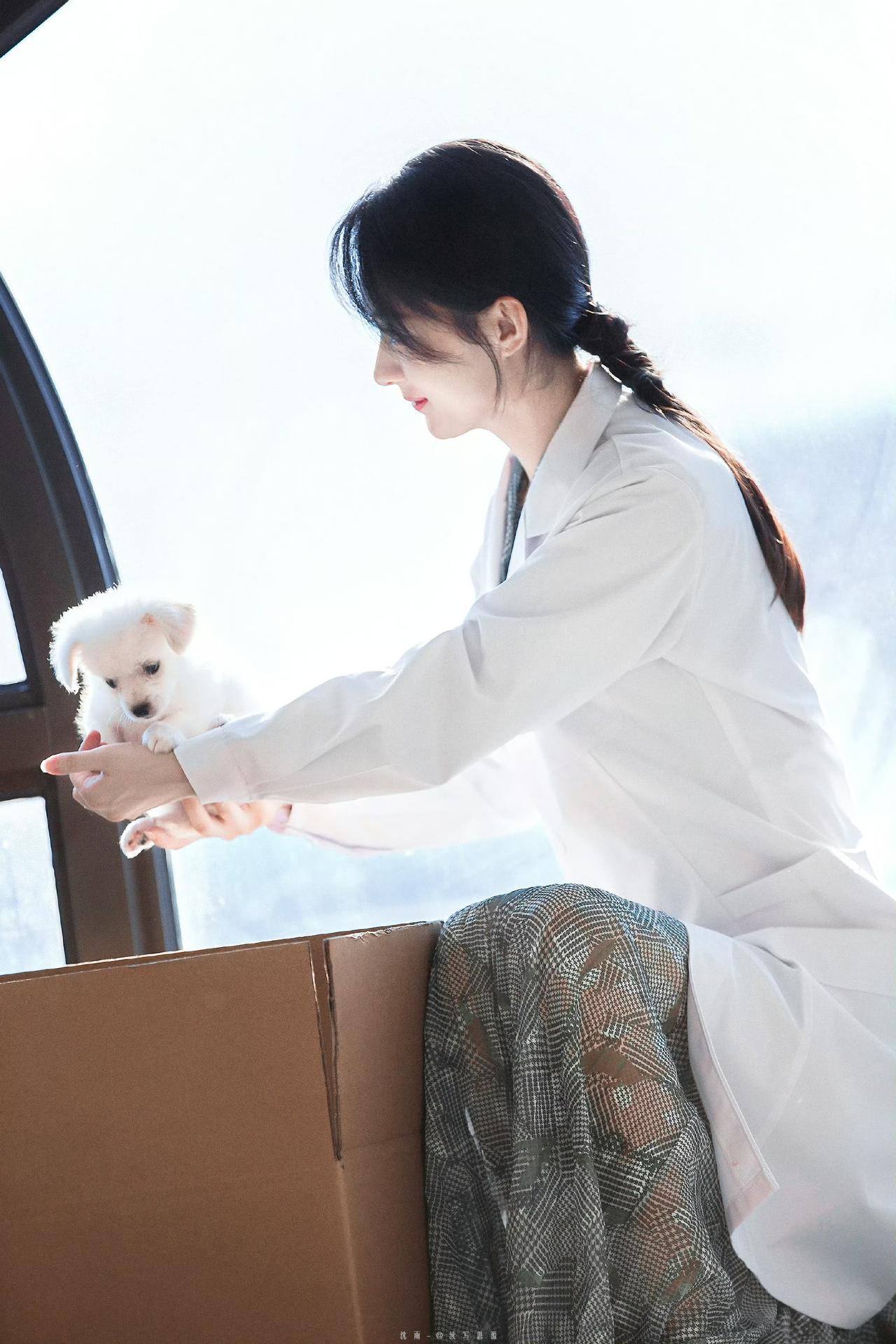 当她穿上白大褂,在晨光里温柔地抱着小狗,眼底的笑意和指尖的温柔,瞬间褪去了角色的冷冽感,只剩下治愈的暖意。