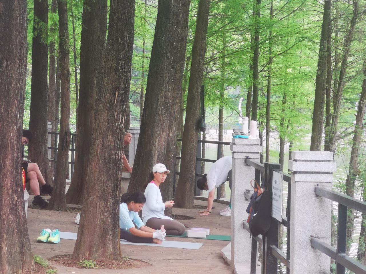 今天早上,我在麓湖公园转了一圈,看到很多女同胞都在运动。我就想,为什么就没看到咱们男同胞运动呢?