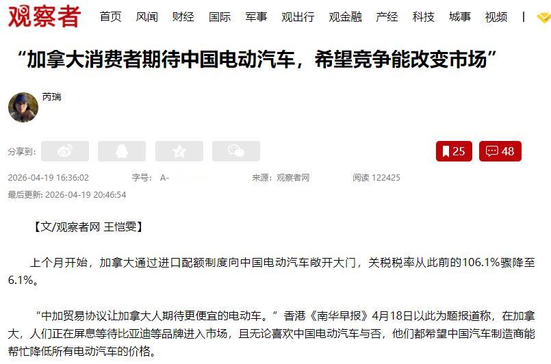 而且这是双赢,加拿大老百姓能买到便宜车,中国车企也能打开北美市场,还能利用当地的锂矿降低成本。