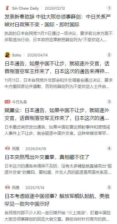 日本通告,如果中国不让步,就驱逐外交官,话音刚落空军王炸来了,日本这次的通告来得猝不及防,没有太多铺垫就直接亮出 “驱逐外交官” 的筹码,要知道,外交人员的驱逐是两国关系恶化的重要信号,通常不会轻易使用