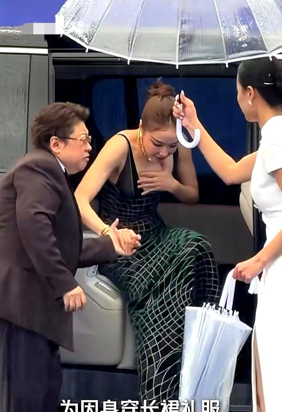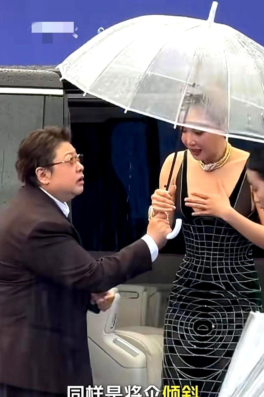 这细节真的绝了,韩红自己淋着雨,把伞下最干爽的地方留给高叶。这种下意识的善良,比红毯上任何造型都高级,难怪网友都说“细节见人品”!