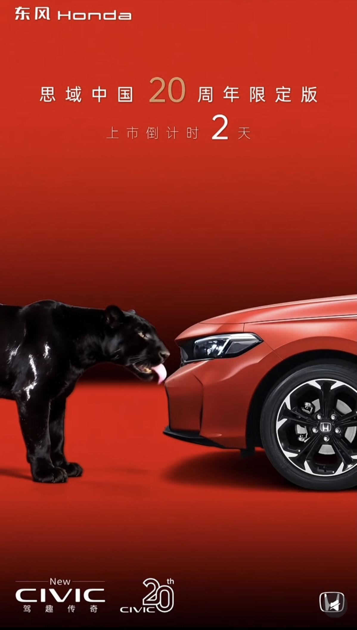 思域中国20周年限定版上市,还有两天!红红火火的颜色确实不错。