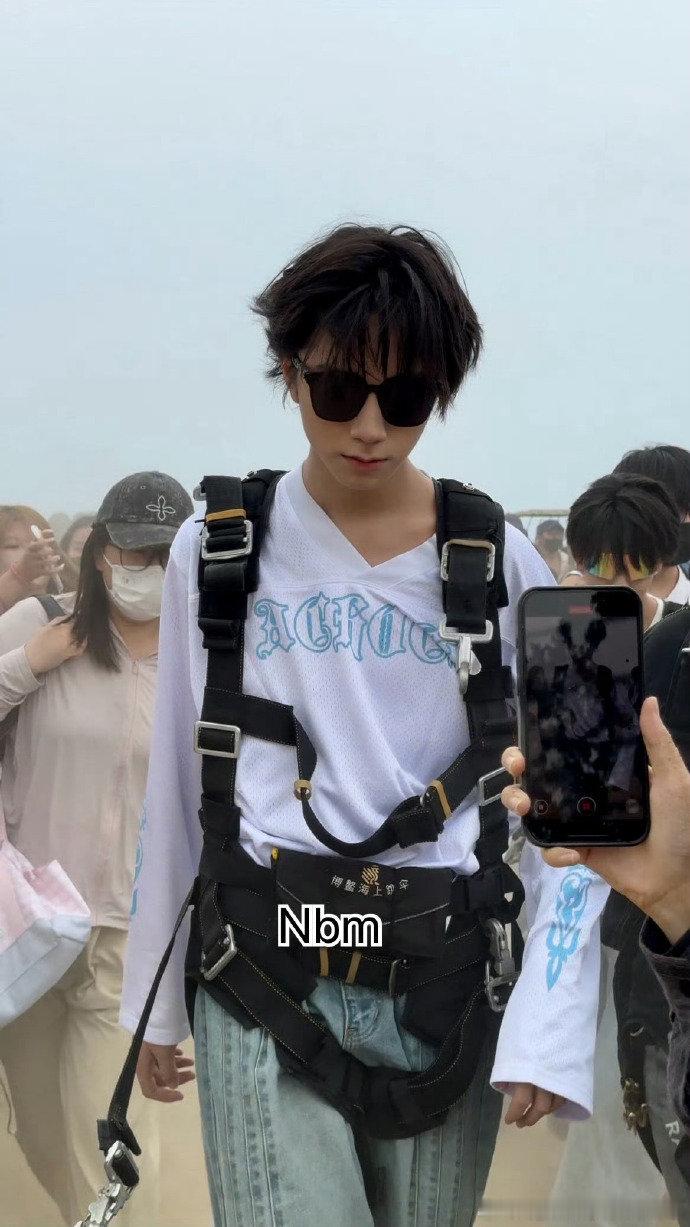 王橹杰戴墨镜好帅王橹杰跳伞造型,墨镜白T帅得人神共愤了~天空中的小杰是最勇敢的!