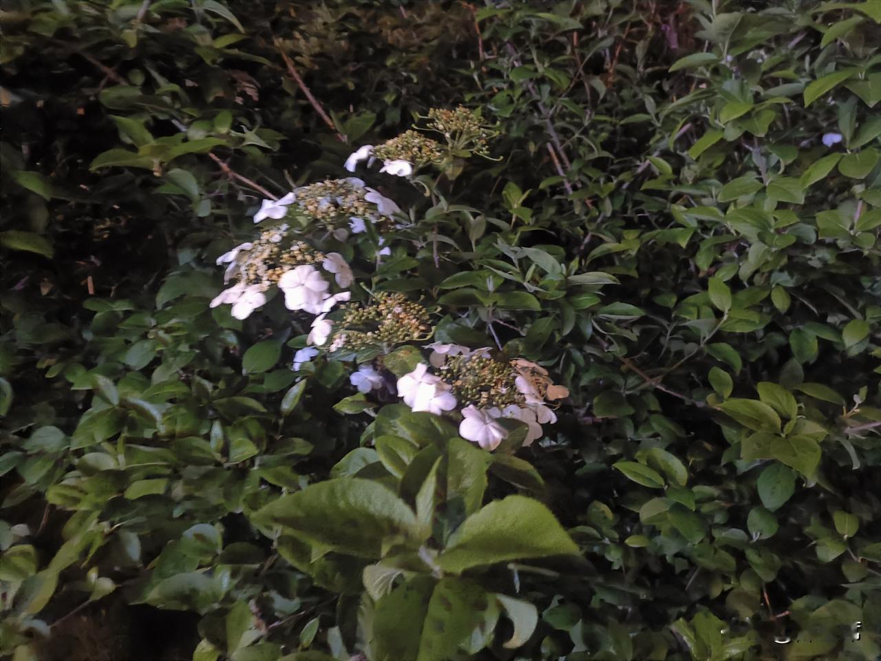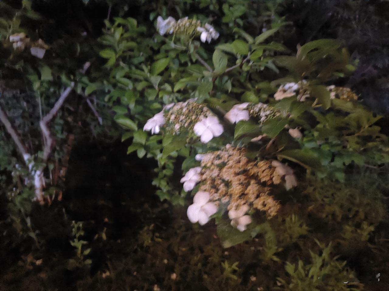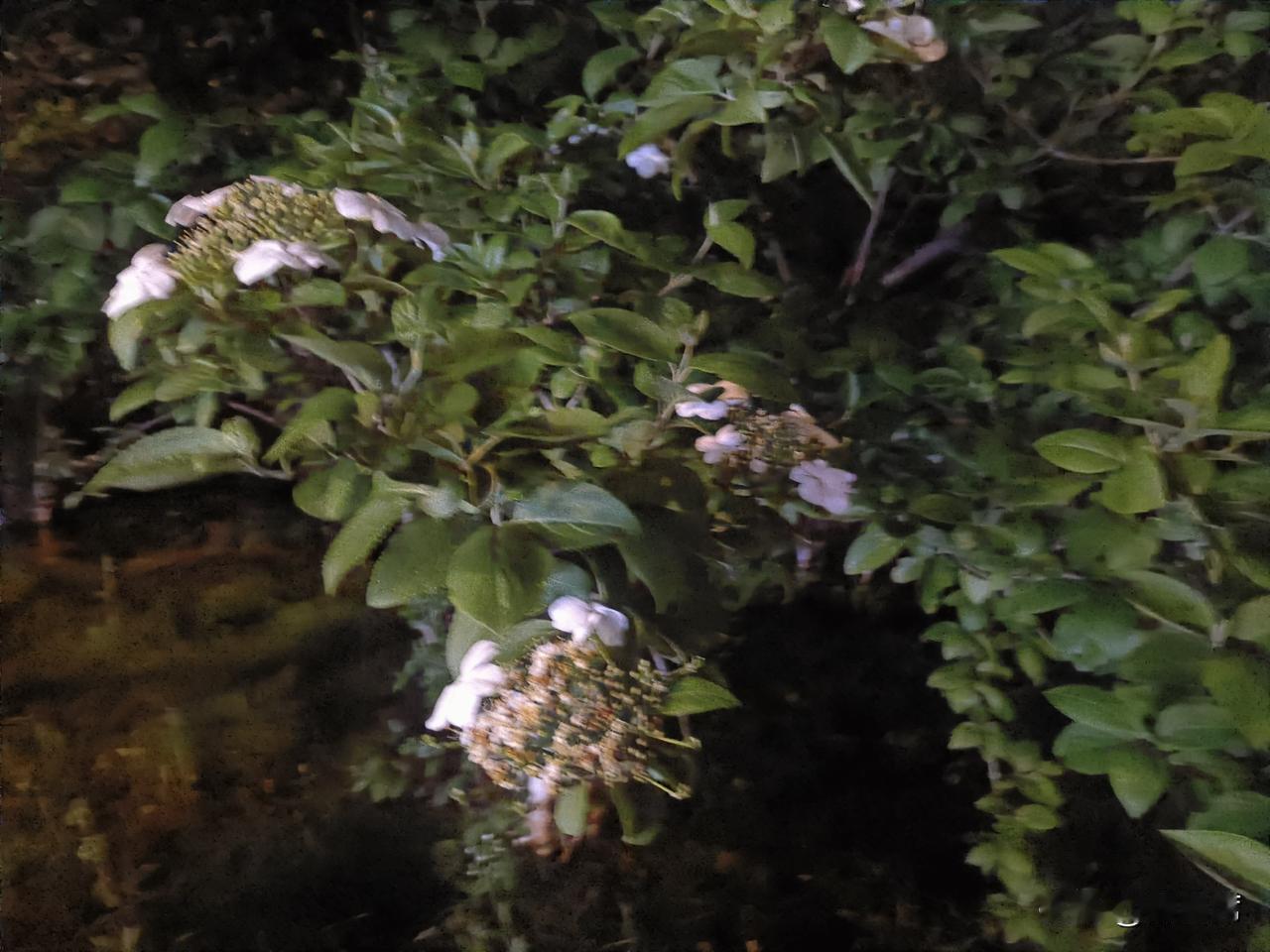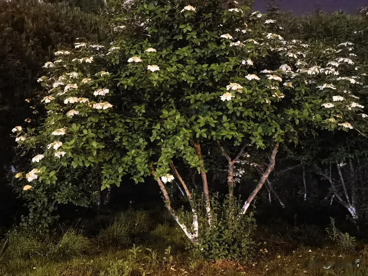 记录我的2026琼花洁白如雪,花瓣层层叠叠,在昏黄的夜灯映照下,像是被镀上了一层