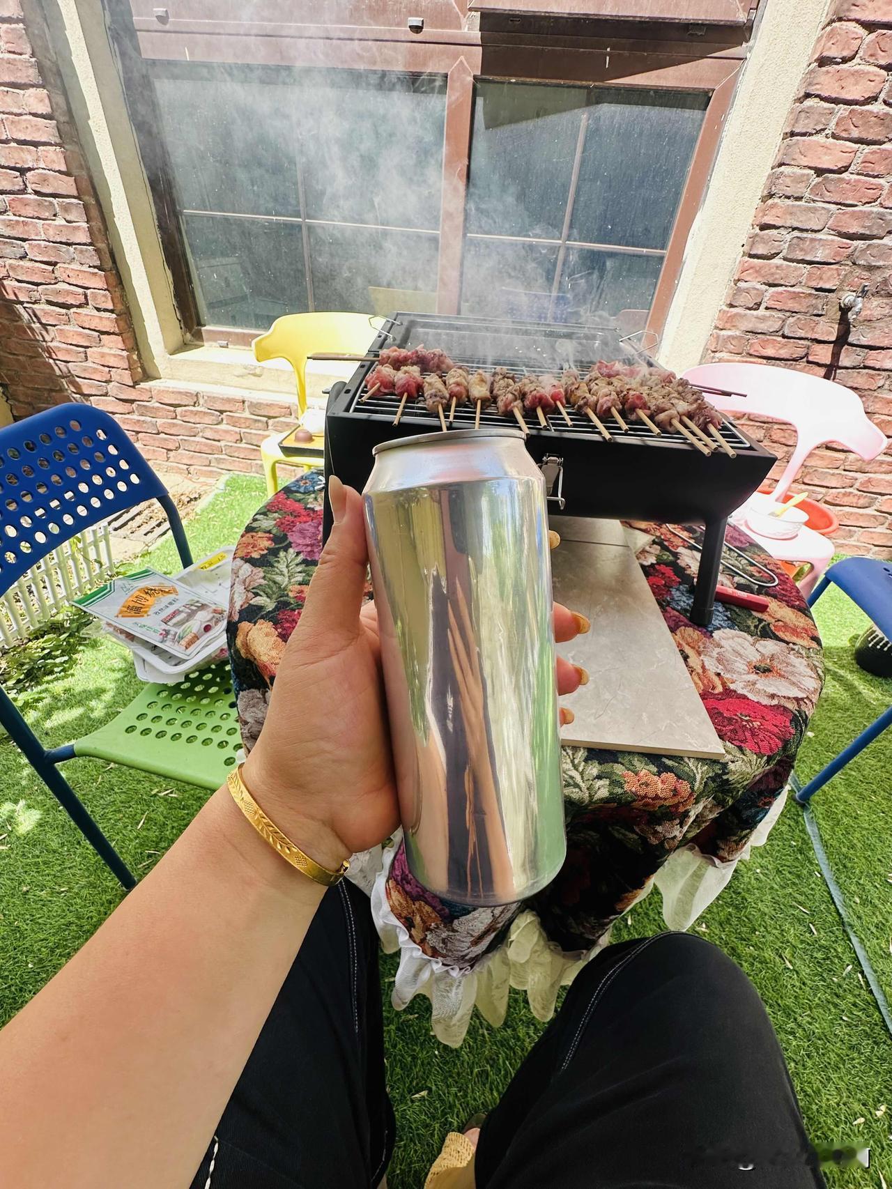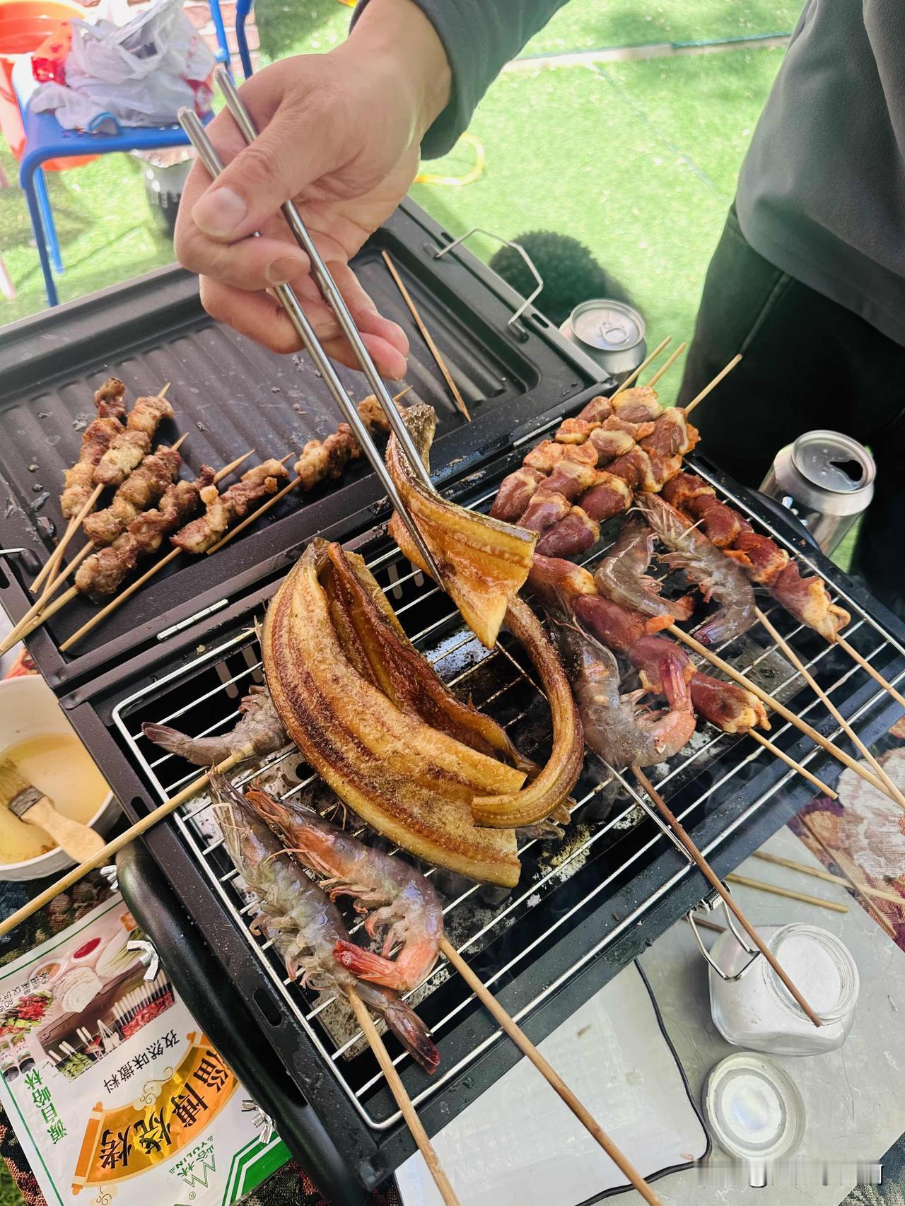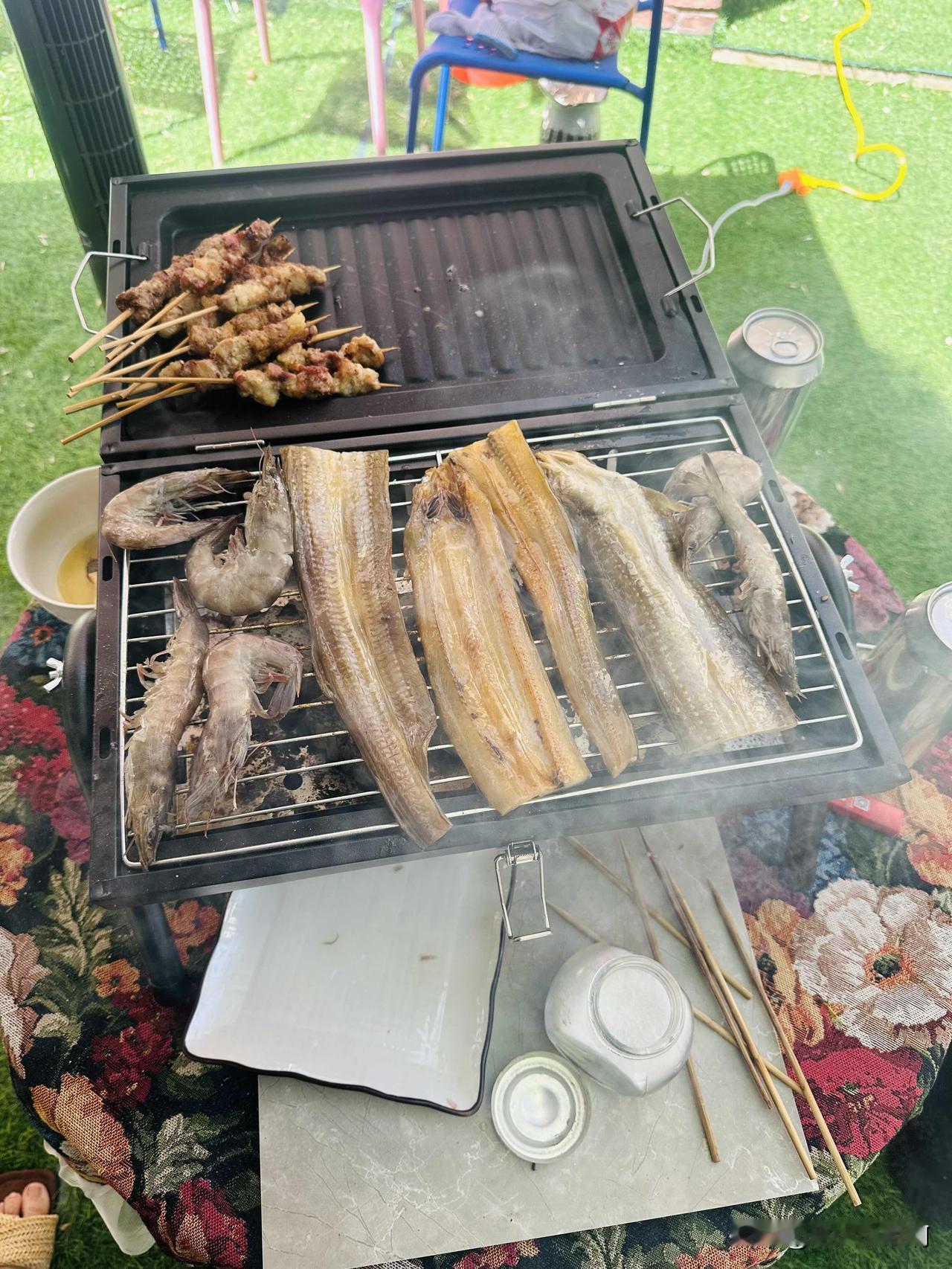 老爷们咬着那根屎橛子犟他不吃,哈哈哈,我刚烤熟他端着啤酒出来了,现在没有比他还忙碌的。