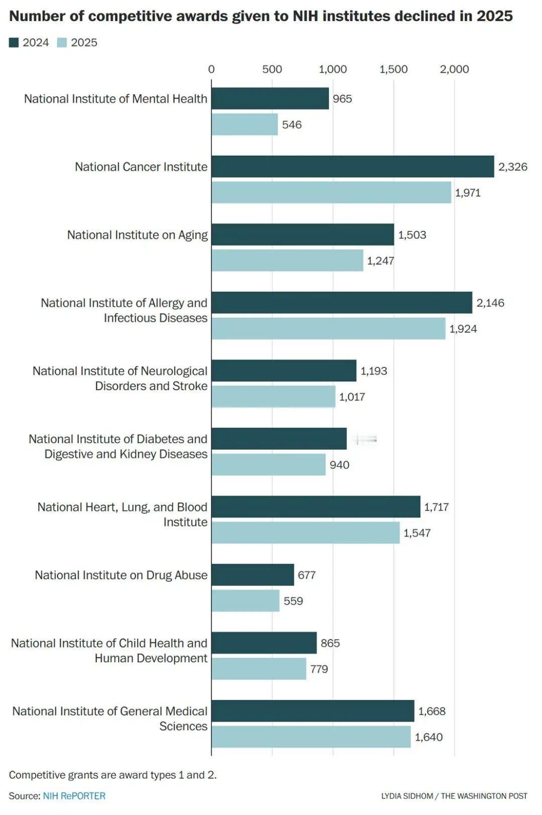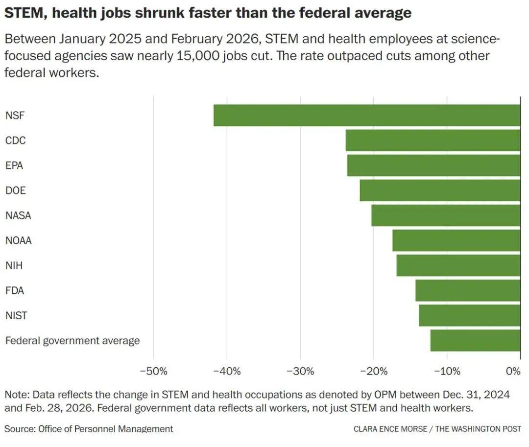特朗普政府在过去一年中对美国科研体系造成了巨大冲击,中断并改变了长期以来为美国科学领先地位提供支撑的、相对稳定的联邦经费来源。尽管法院和国会已叫停了特朗普部分最严厉的削减措施,但推进中的科研项目仍在减少,导致美国科学体系正在收缩。美国国立卫生研究院受到的影响尤为严重。总体而言,该研究院在2025财年支持的科研项目比上一财年减少了2700多个,竞争性科研资助项目数量下降约15%。在本财政年度过半时(截至3月31日),该研究院所发放的竞争性科研资助项目数量,与去年同期相比下降了超过一半。分析显示,生物医学研究资金也发生了结构性变化,在几乎所有主要疾病领域都减少了科研覆盖范围,包括针对女性健康、癌症和心理健康的资助项目显著减少。