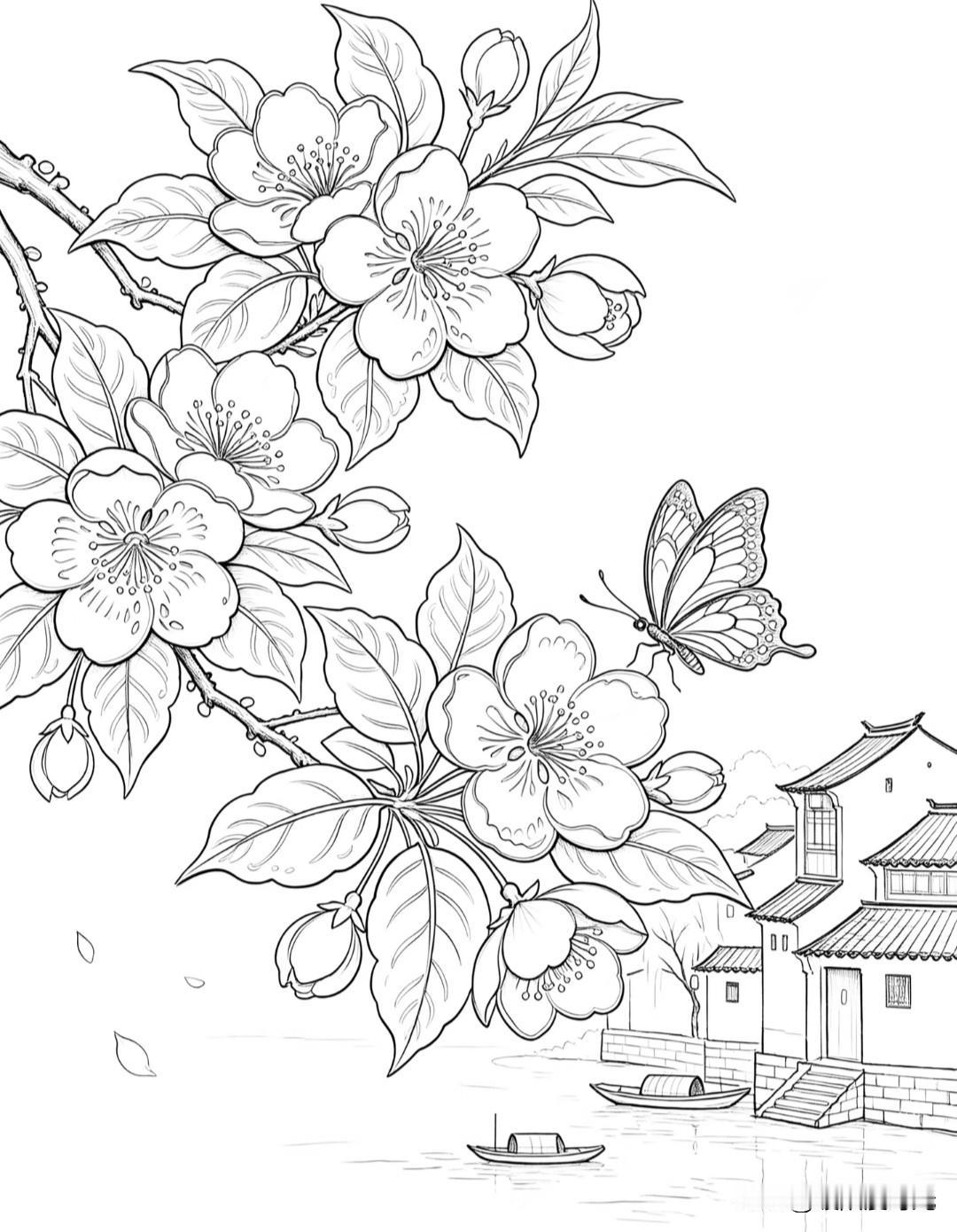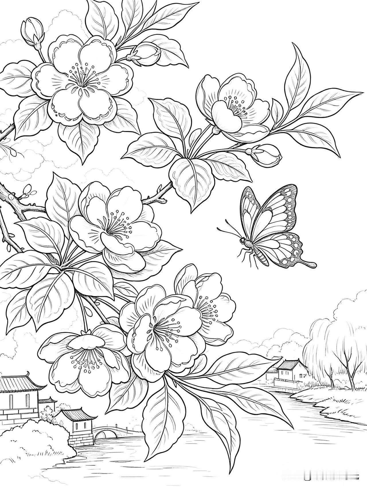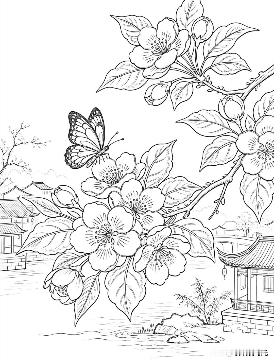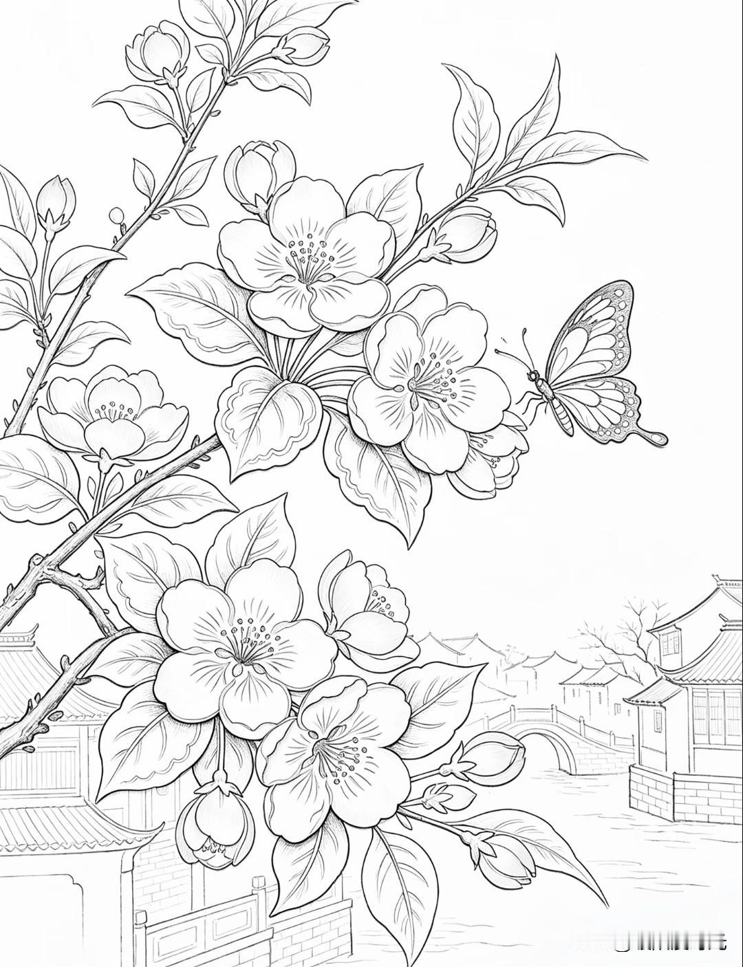 西府海棠俏,剪纸拼贴,春意枝头闹。