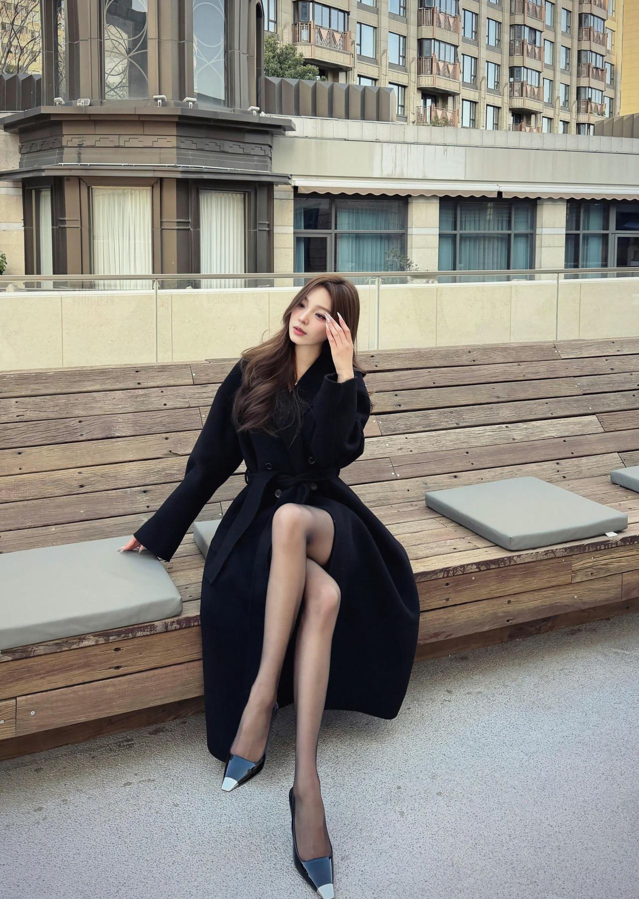 OOTD:全黑高级感, 长款大衣配金属尖头鞋,自带“不好惹”的气场, 黑丝不是性