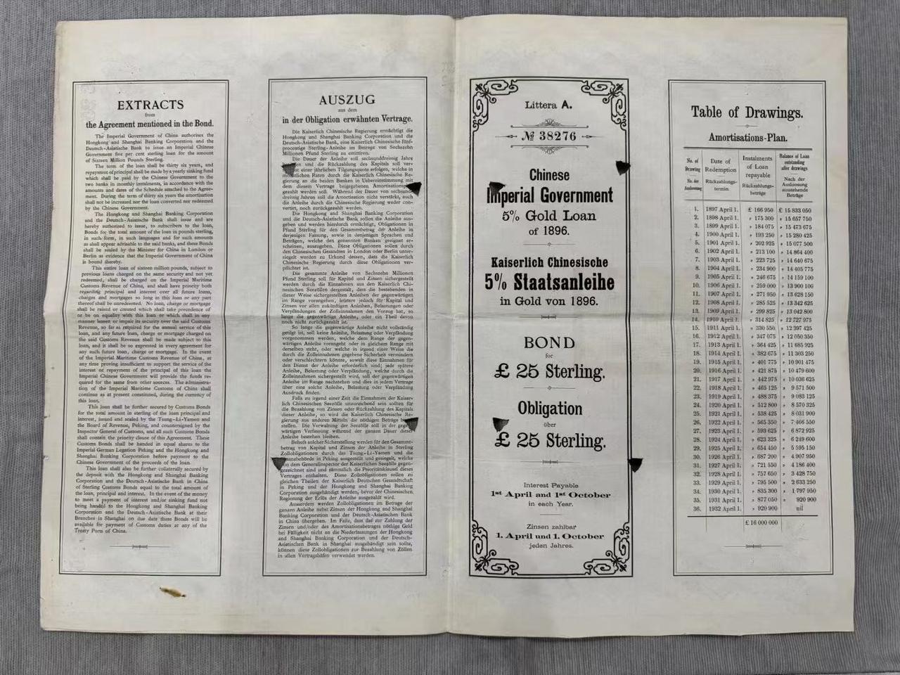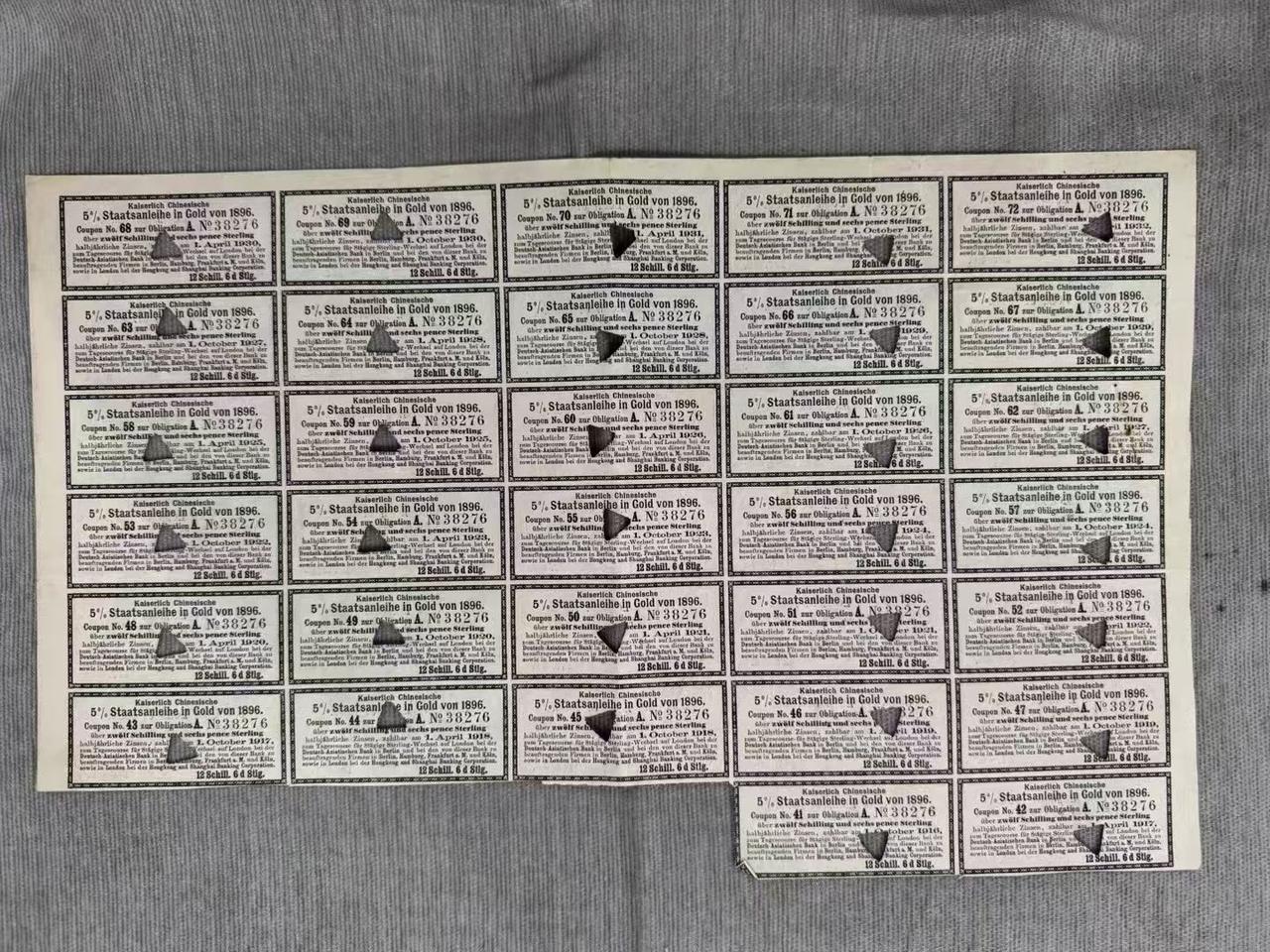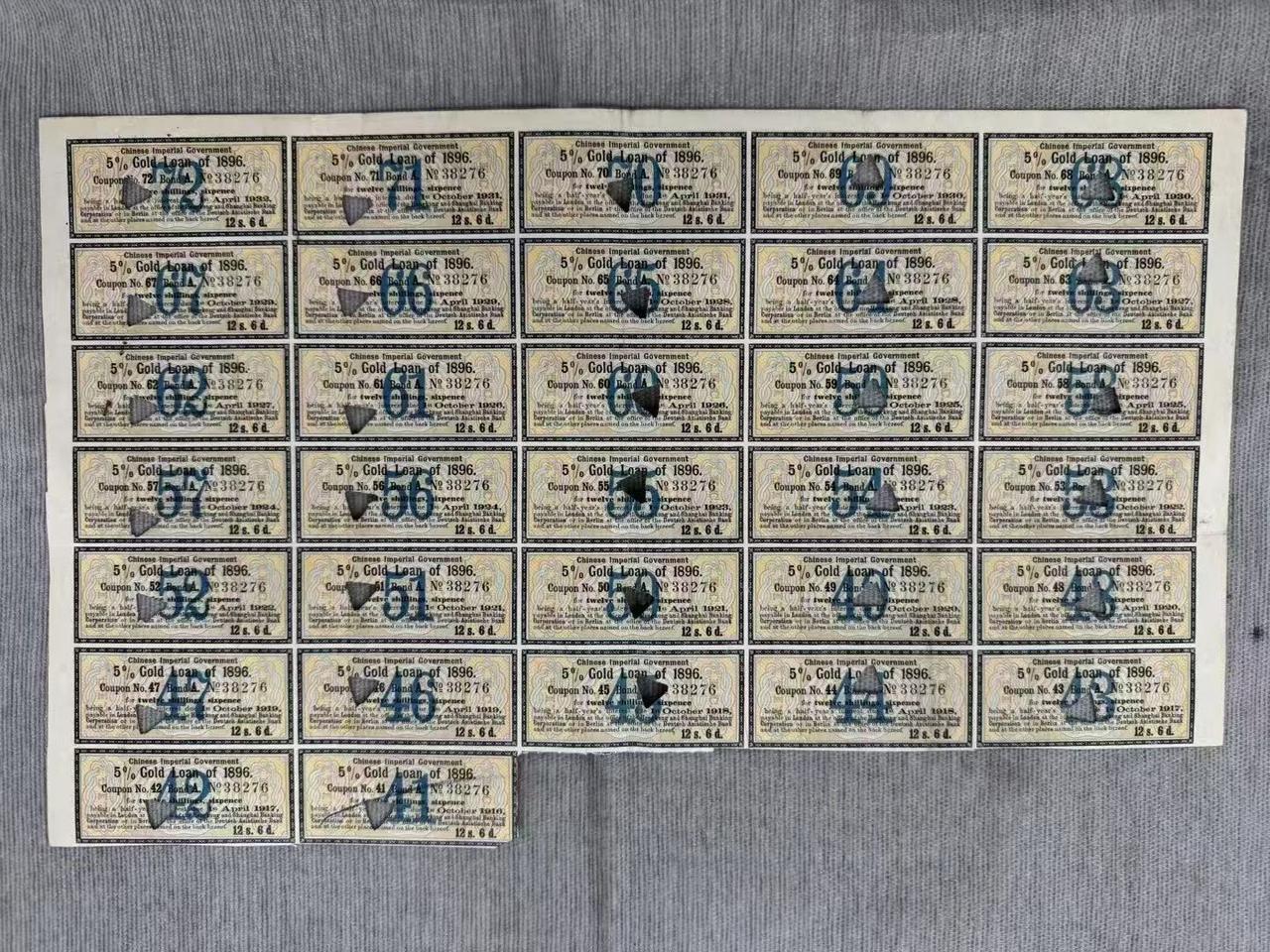 清代1896年《甲午赔款债券》超级大票幅38CM×50CM