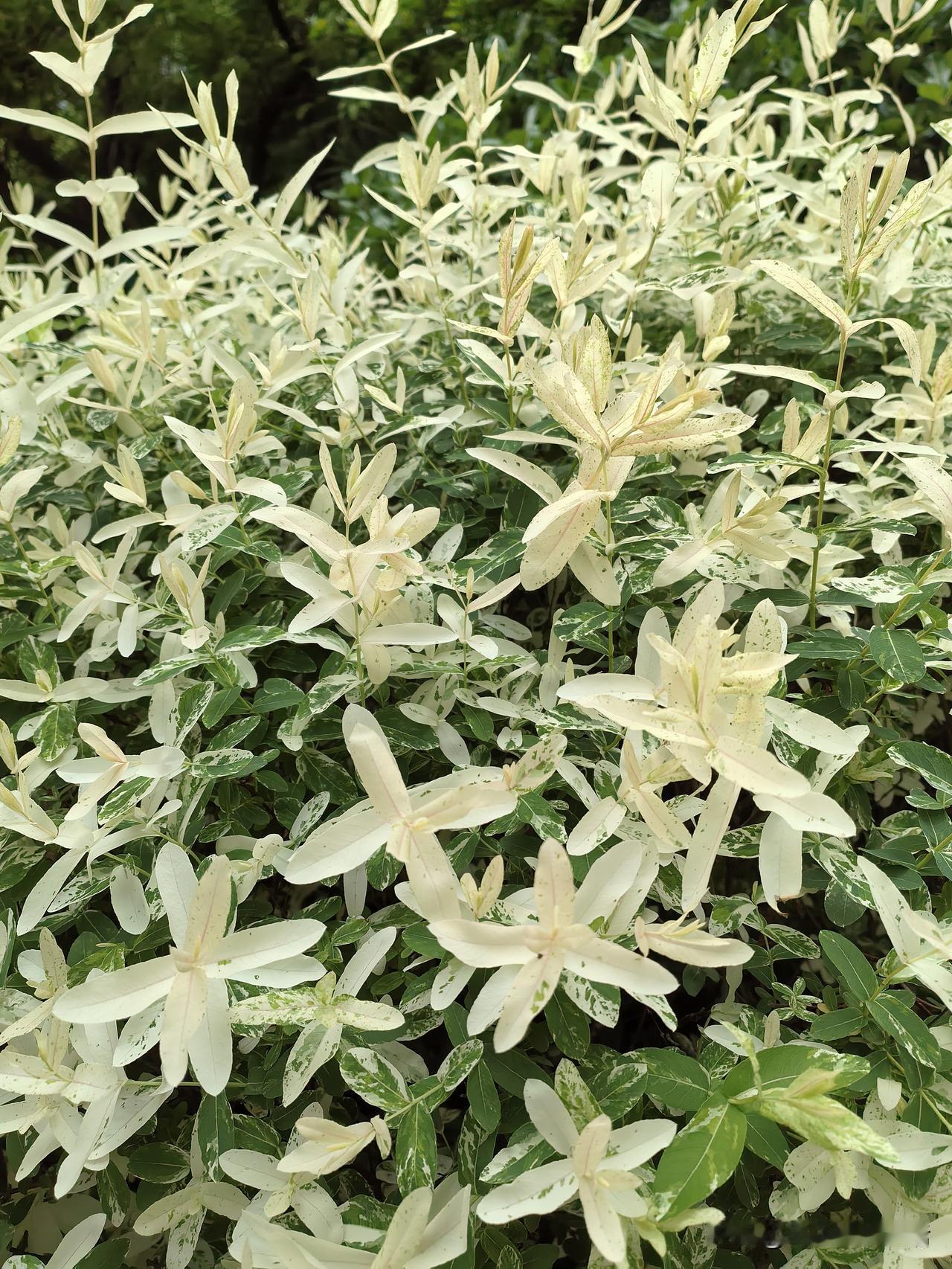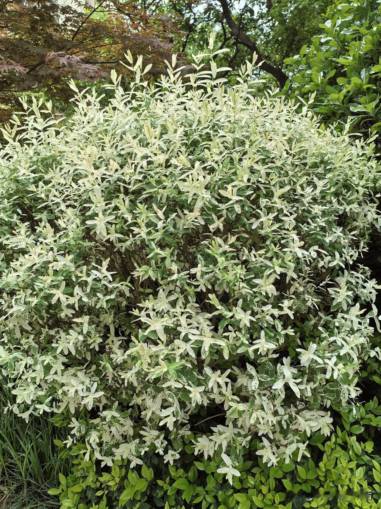 问了豆包,豆包回答这是彩叶杞柳(Salix integra 'Hakuro Nishiki'),也叫花叶杞柳,是园林里超受欢迎的彩叶灌木。