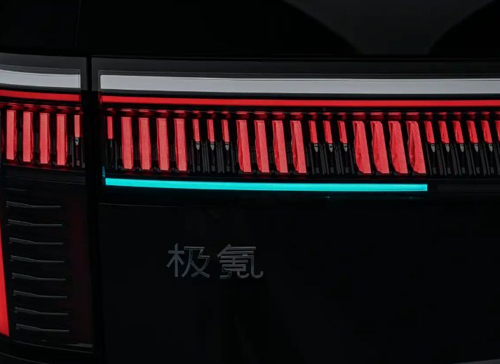 侧面来看,其侧面造型方正魁梧,气场十足,虽然采用常见的悬浮式车顶设计,但C柱造型非常精巧别致,彰显出车侧的个性感。尾部方面,其采用贯穿式的尾灯设计,中间是ZEEKR标志,尾灯两侧采用了7型的设计,整体有着不错的辨识度。