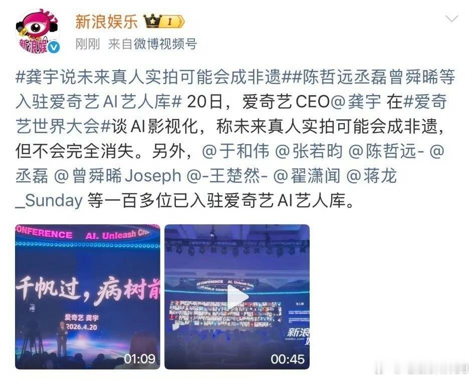今天的爱奇艺世界大会宣布已经获得上百位艺人的AI授权,真人拍摄越来越稀有,未来可能成为非遗。