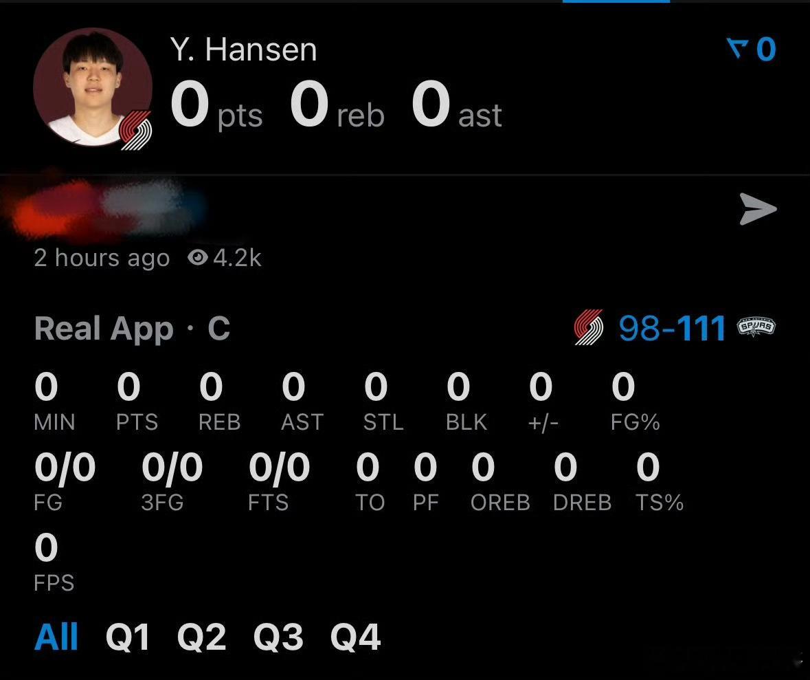 NBA杨瀚森末节替补登场不到1分钟——所有数据全部为0,哪怕一个失误,一个犯规都
