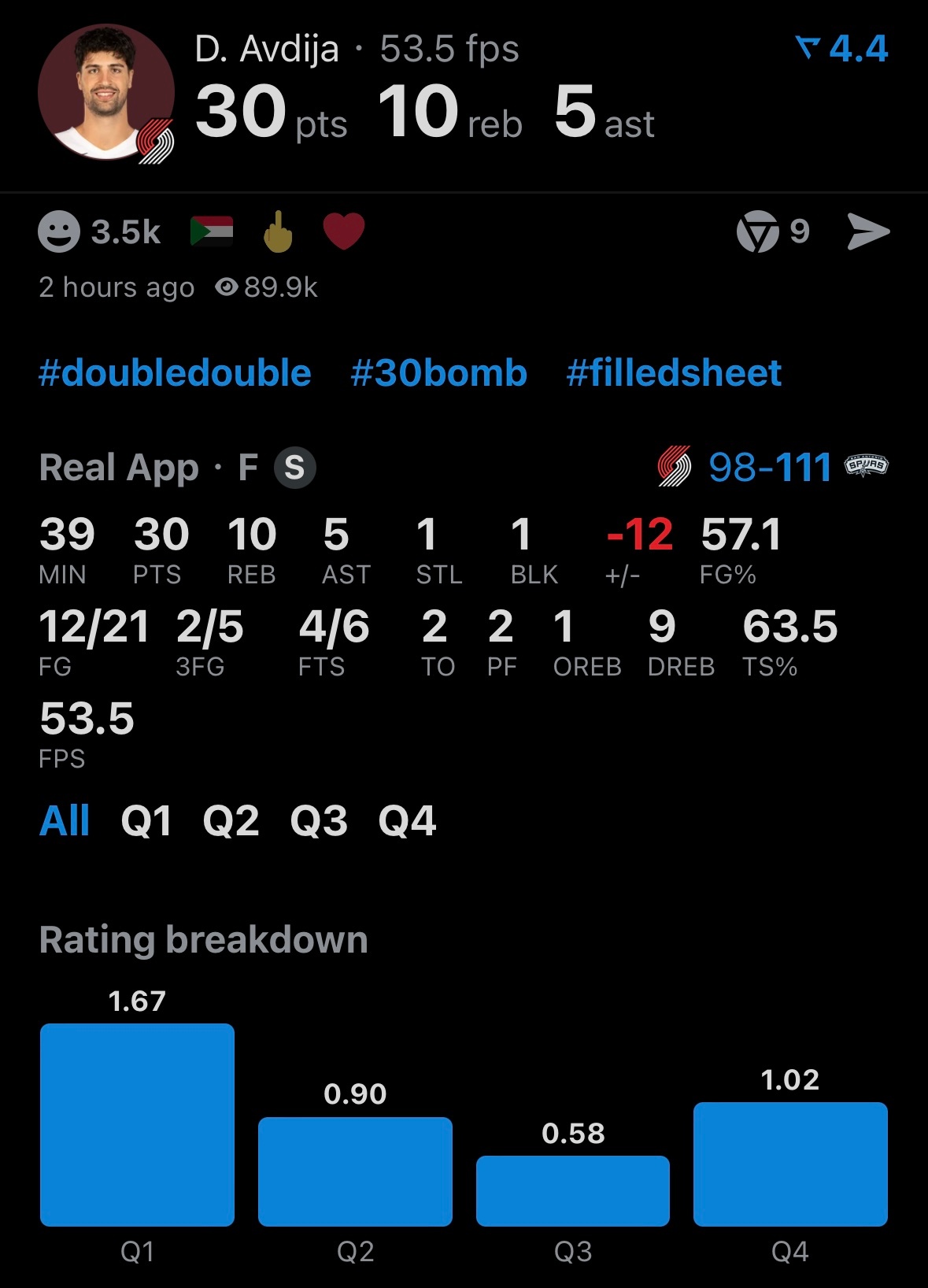 无懈可击!马刺111-98开拓者,谁是赢球功臣?数据不会说谎除了阿夫迪亚和亨德