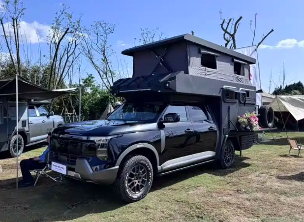 最直观的实用性体现在户外用电上,Frontier Pro PHEV全系搭载6kW超大功率智能放电面板,这个参数在同级别皮卡中处于行业领先水平,能够覆盖99%的户外用电场景。在试驾现场的露营区域,工作人员用这台车的外放电功能,轻松带动了咖啡机、户外投影仪、电烤炉等设备,围炉煮茶、户外观影,完全不用依赖外接电源,真正实现了“露营用电自由”。更贴心的是,这款车拥有6种拓展用电场景,包括V2L对外放电、V2V救援、3孔/5孔/12V接口供电,还有行业首创的三种智能放电方式——10kW驻车发电、行车对外放电、锁车对外放电,不管是户外露营、户外作业,还是应急救援,都能轻松应对。