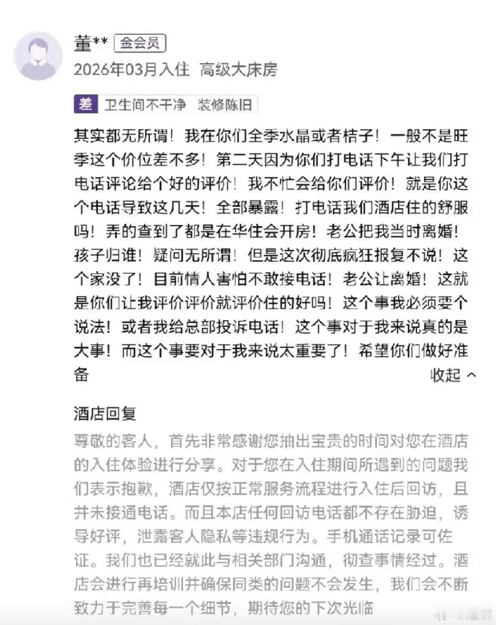 全部暴露 孩子归谁 据说因为这个事,华住员工已经被通知以后不用打回访电话了