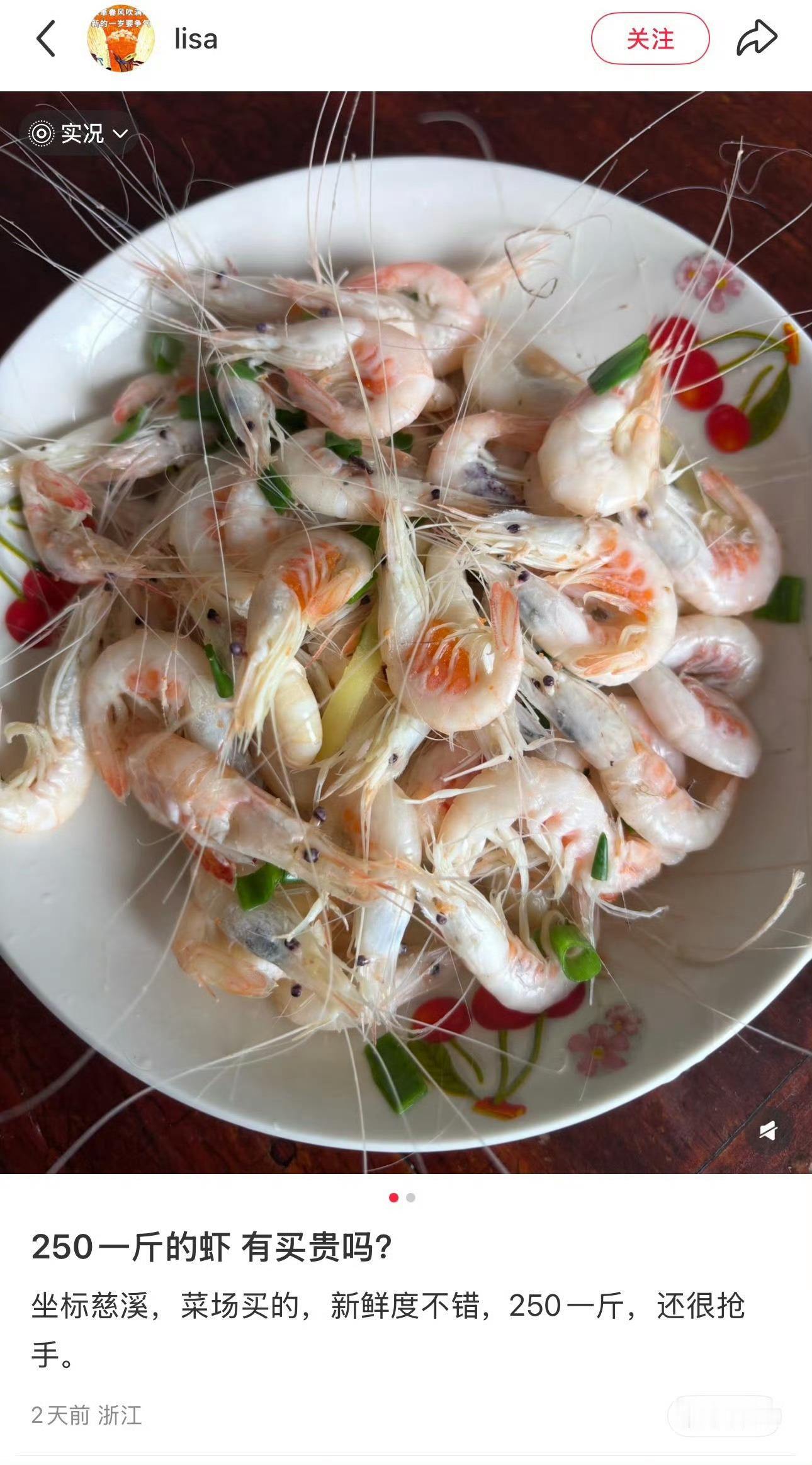 宁波网友问250元一斤买的虾算贵吗❓250一斤的虾 有买贵吗?坐标慈溪,菜场买的