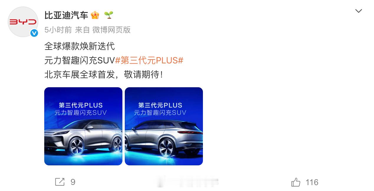 第三代比亚迪元PLUS,正式定档北京车展首发。一个小SUV竟然也带闪充,现在我最