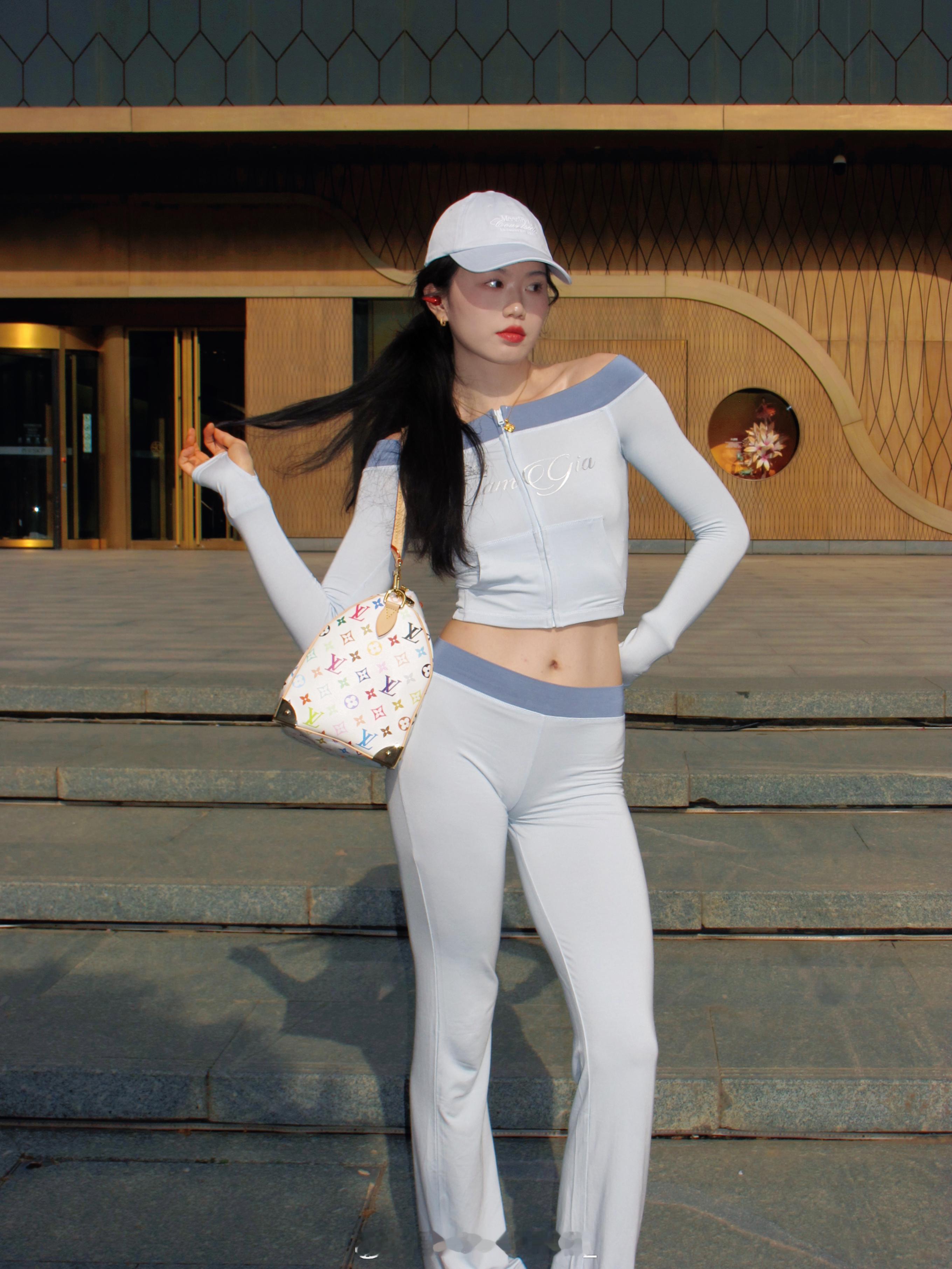 很欣赏最近的体脂状态🫰🏻逛街开始之前朋友随手出了两张好有vibe的图!!蓝色的穿搭和春日微光好搭啊~🧊(没怎么穿过低腰裤但这身我真的好爱啊啊啊啊啊啊!! 健身