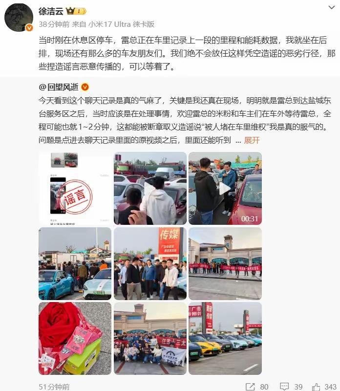 4月19日,一段聊天记录在各个微信群疯传,说雷军在盐城东台服务区被车主堵在车里维权。